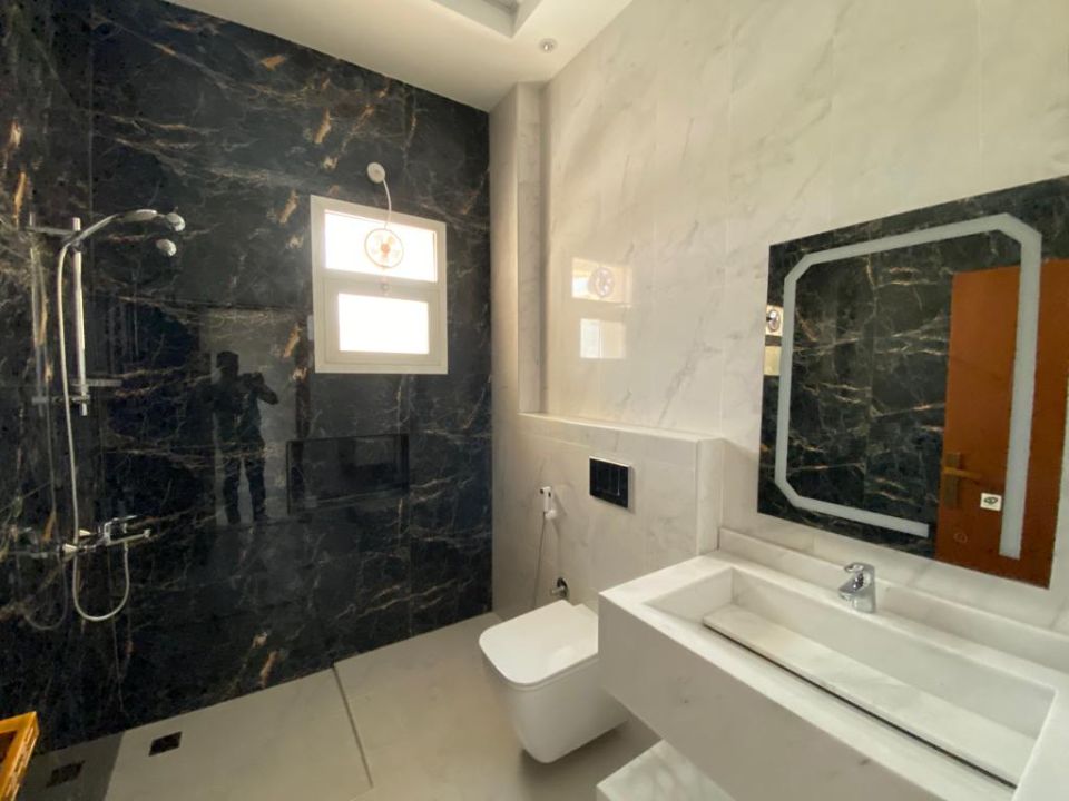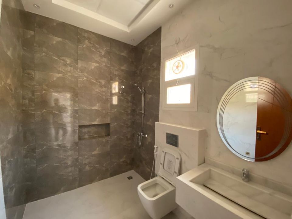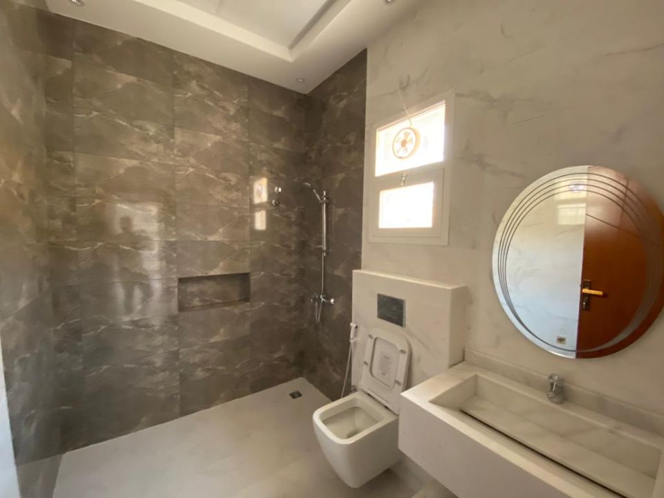The villa’s ground floor is designed for the family's daily living needs. It has a fantastic guest bedroom with a bathroom. It also involves a modernized kitchen, a maid’s room with a bathroom, and a wonderful parking space. The villa also has a significant extension in front of the property, providing additional outdoor space for family gatherings and events.