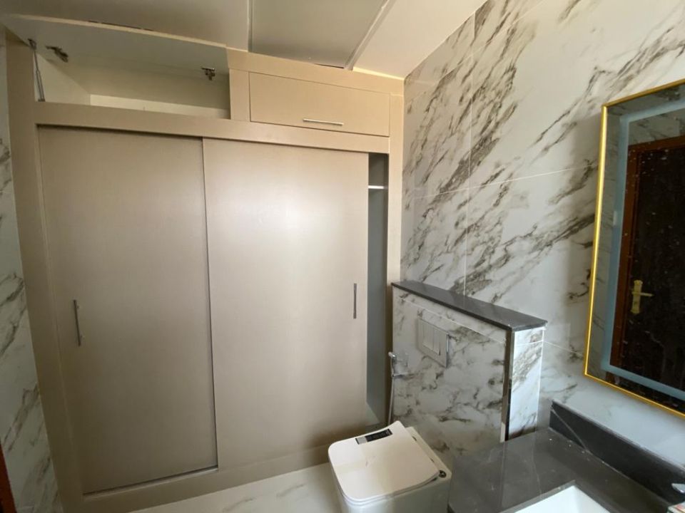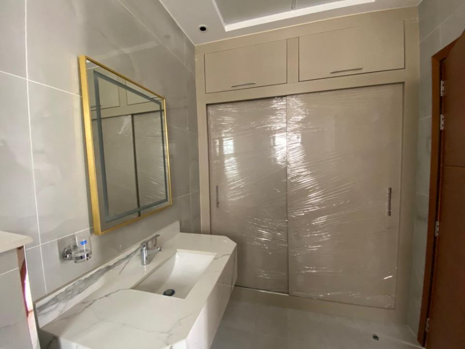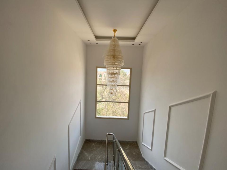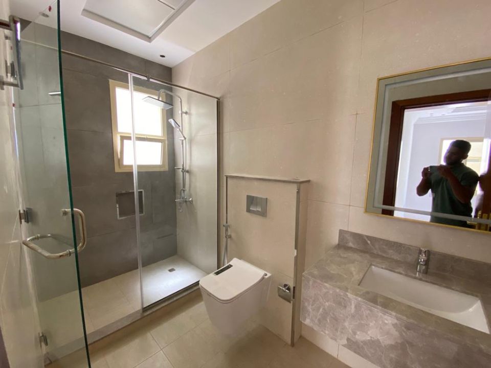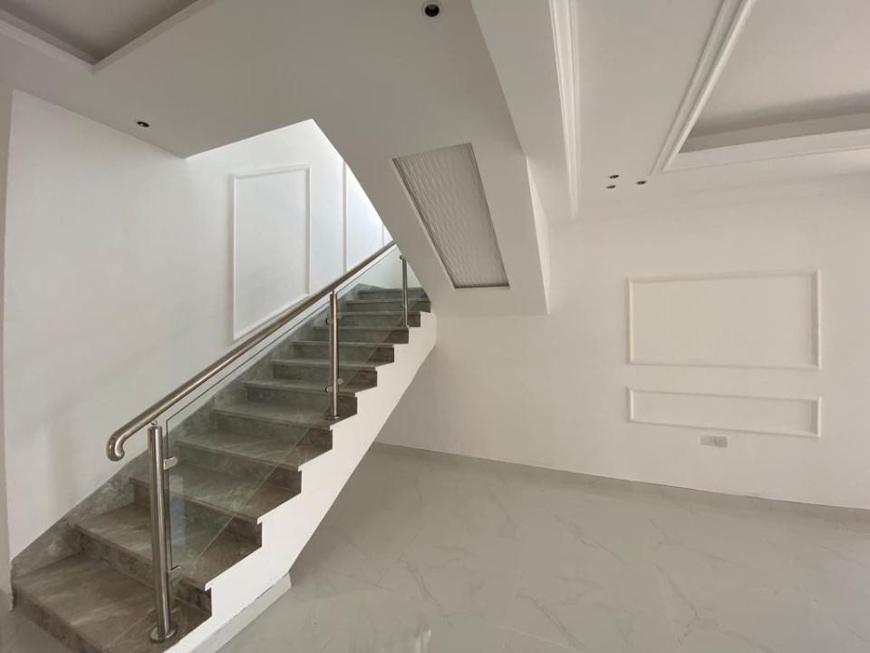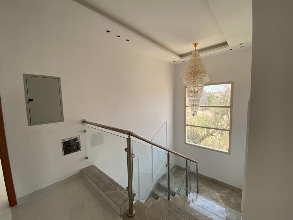 The villa is spread over two floors, with one bedroom, kitchen, dining room, TV lounge, maid's room, and storeroom on the ground floor. The remaining four bedrooms, each with built-in wardrobes and a dry pantry, are on the first floor. The villa has a super lux finish with excellent decorations, making it a unique and stylish property. The villa features a range of amenities designed to provide residents with a comfortable and convenient lifestyle, such as: