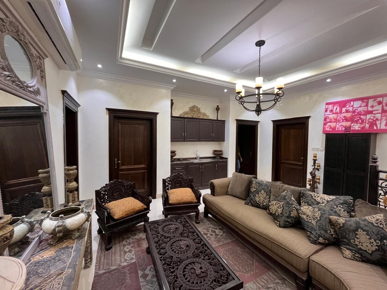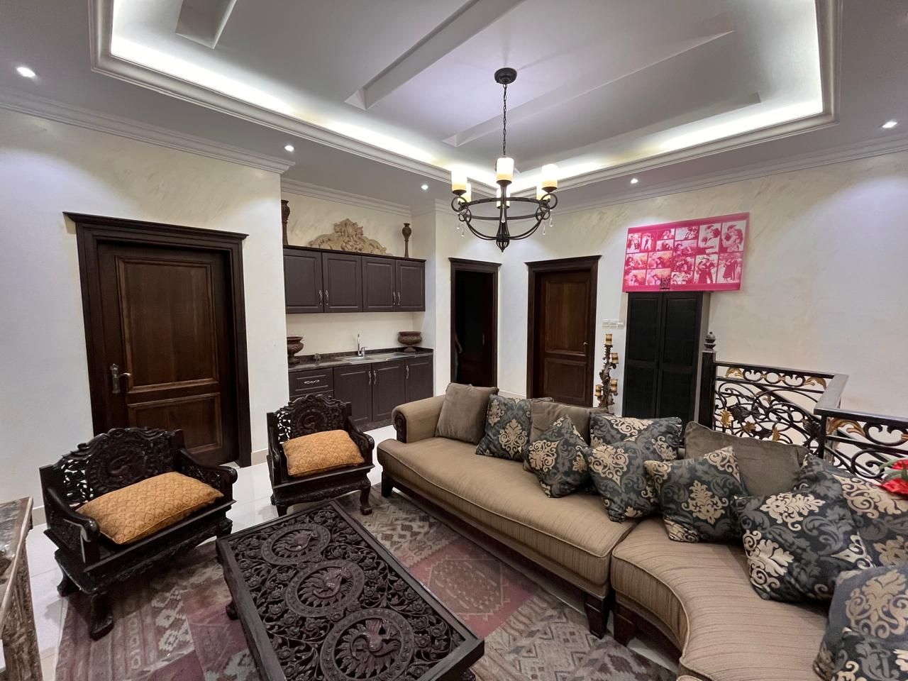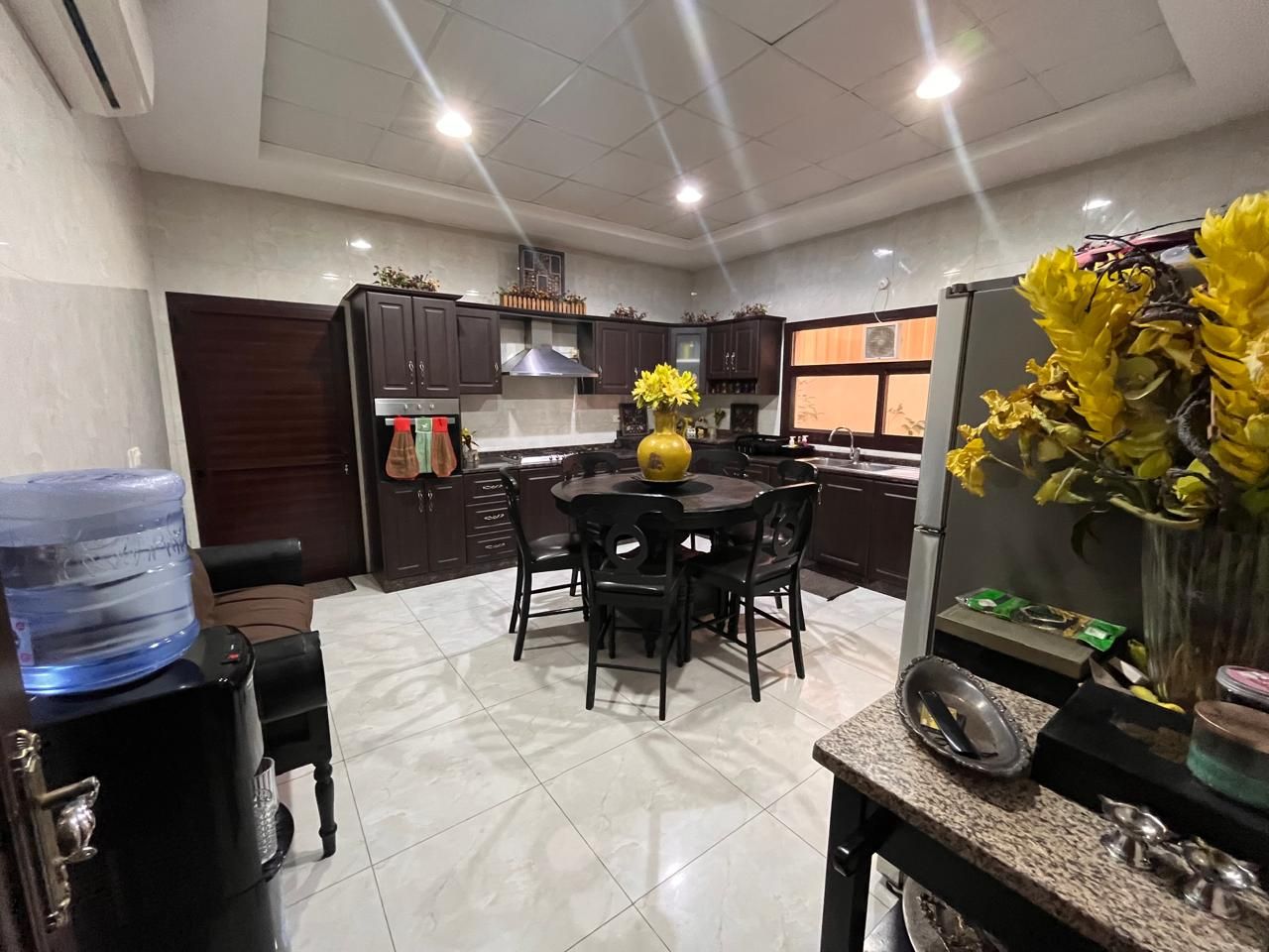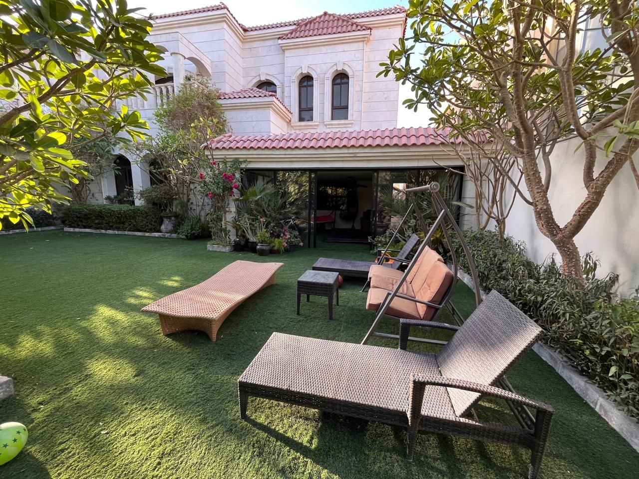 Five spacious bedrooms in the villa have attached bathrooms and hidden wardrobes, ensuring that all family members' privacy and convenience needs are met. The kitchen is sleek and modern, with up-to-date fittings, ensuring a flawless cooking experience.