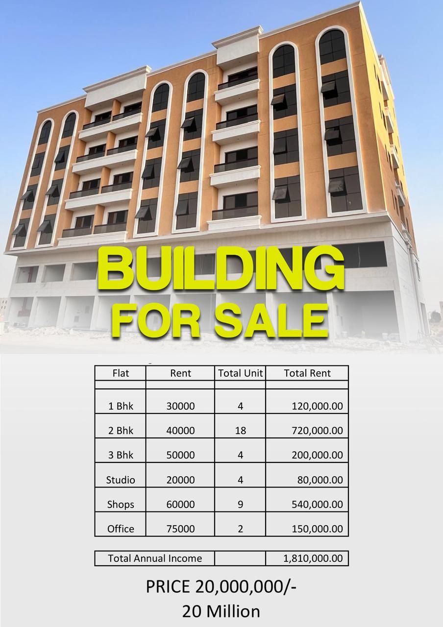 | Al Yasmeen Discover a profitable investment in Al Yasmeen, Ajman, with this newly built property offering a blend of residential and commercial units. With 41 units, including apartments, studios, shops, and offices, this building is composed to generate substantial annual income, currently estimated at 1,910,000 AED. Building Priced at AED 23,000,000.