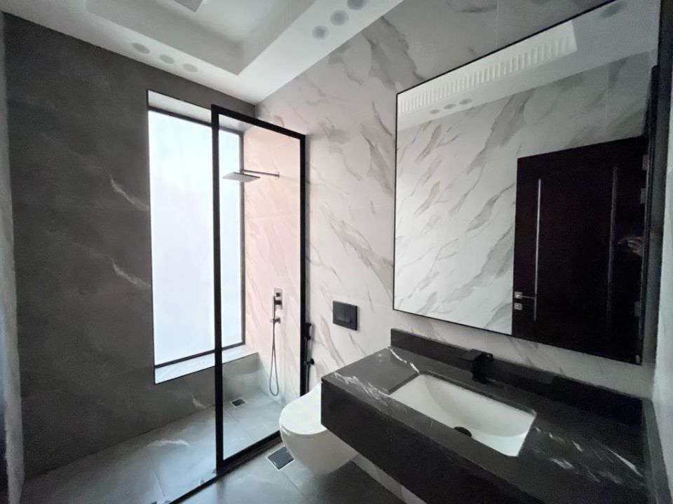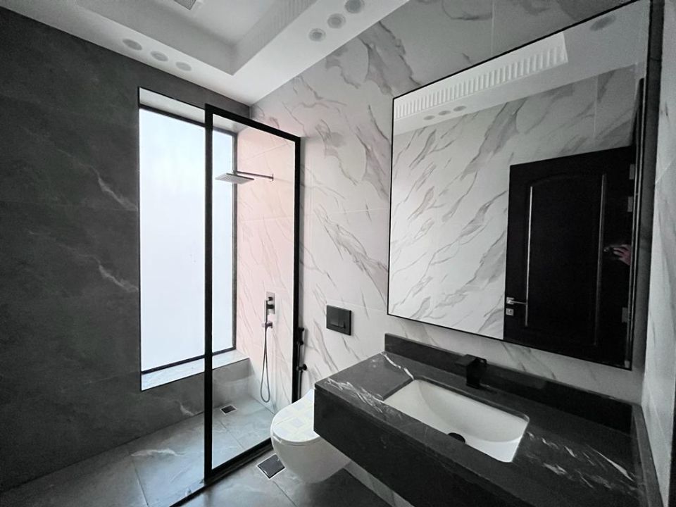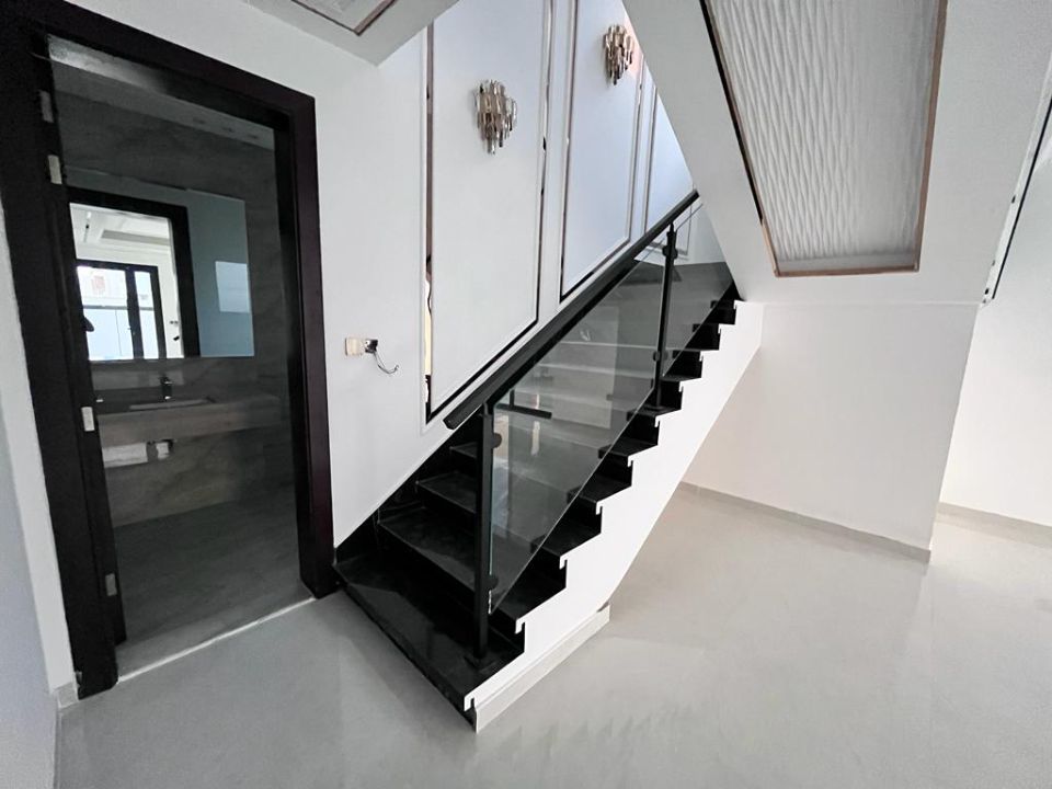 Step outside into the beautiful garden, where you can create your private oasis of serenity or host gatherings with friends and family. The villa also comes with a maid's room, ensuring that your comfort is cared for. Never worry about storage space again, as the storeroom caters to your needs and the convenience of a dry pantry. The bathrooms are designed with style and functionality, providing a relaxing sanctuary.