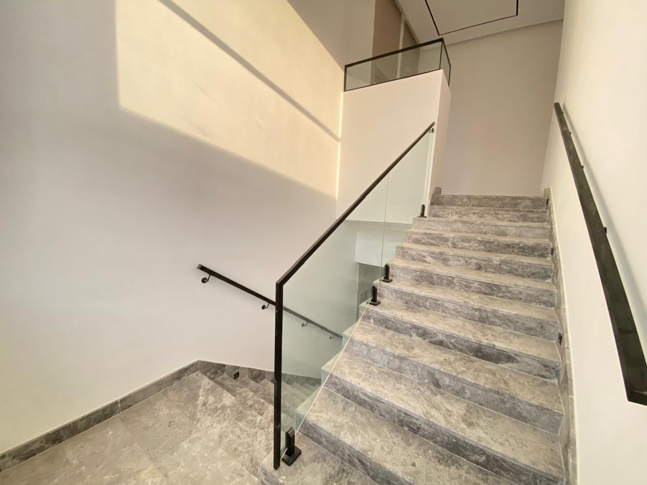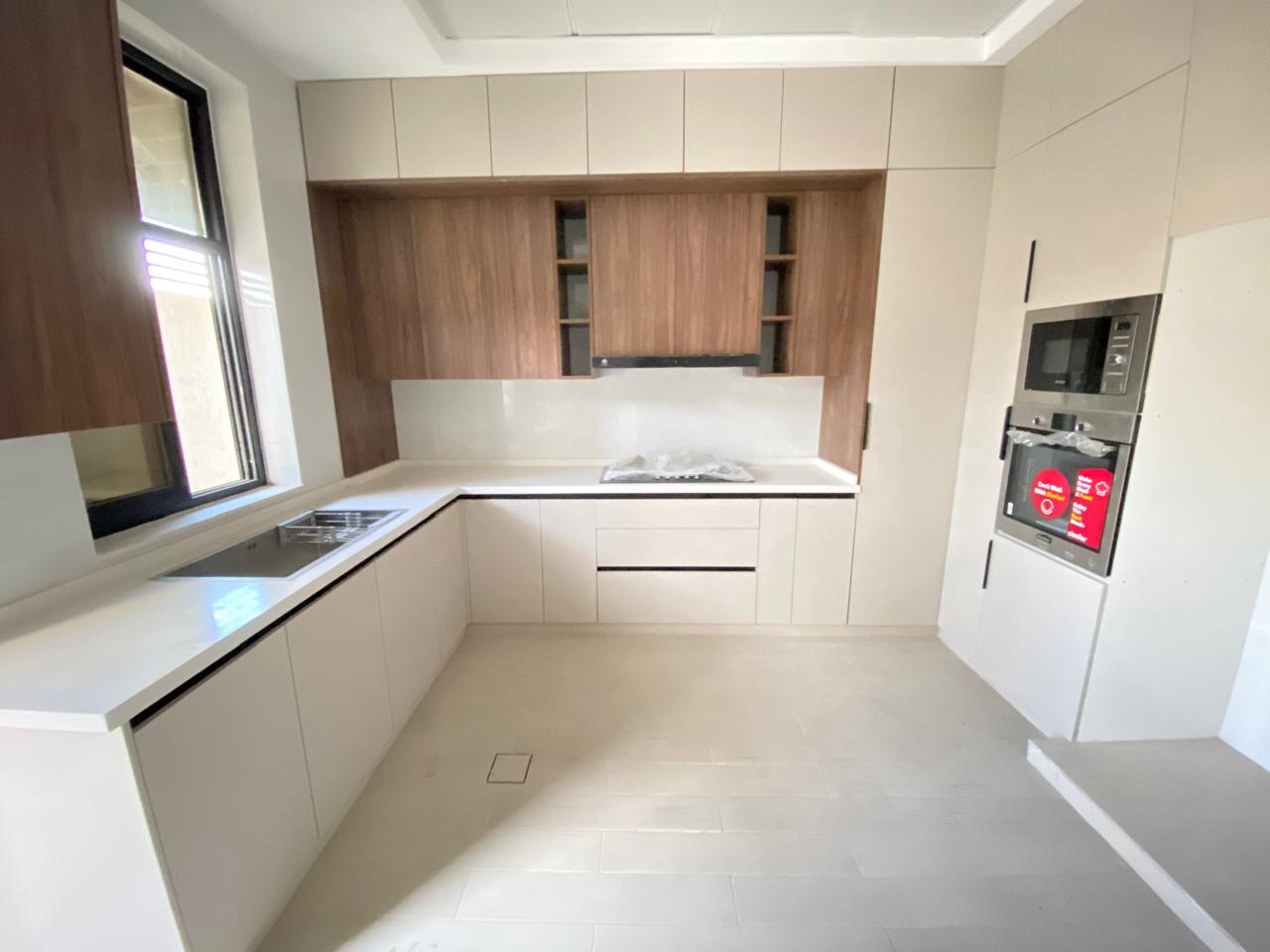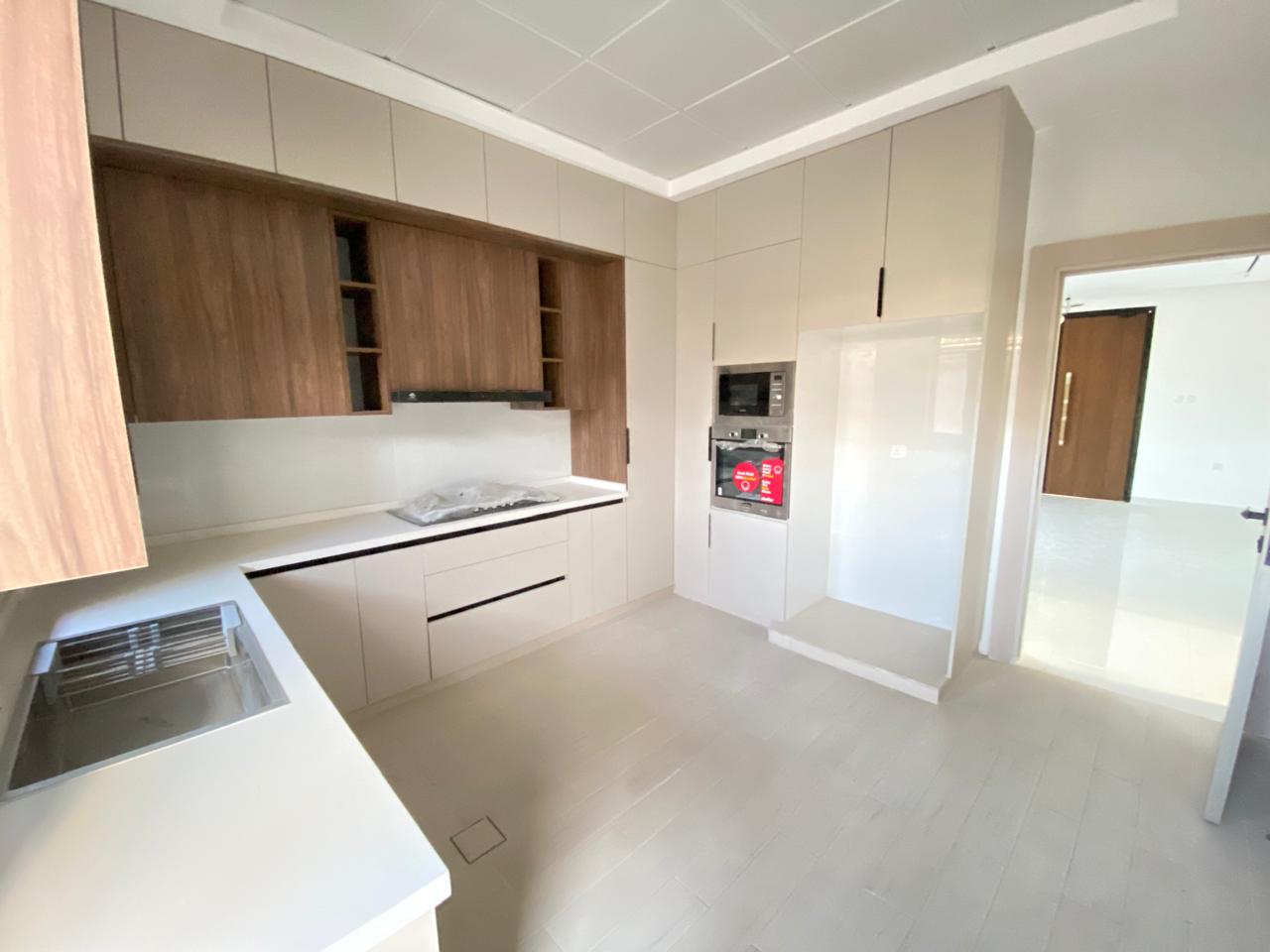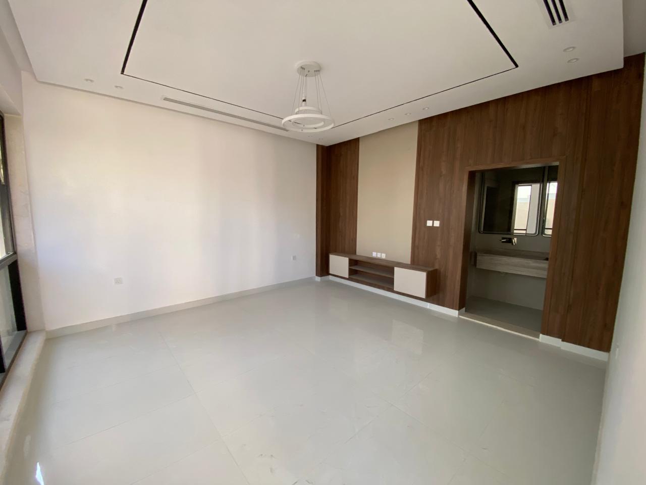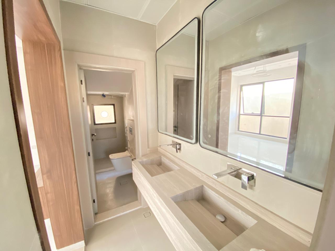The villa features five spacious bedrooms, including a master suite with an en-suite bathroom and a walk-in wardrobe. Family bathrooms and a guest powder room complement additional bedrooms. Open-plan living and dining areas maximize space and natural light, while a modern kitchen with built-in cabinets and countertops caters to all your culinary needs. Other amenities include a utility/laundry room, multiple balconies, a landscaped garden, and covered parking for several vehicles—premium finishes and air-conditioning throughout enhance comfort and elegance.