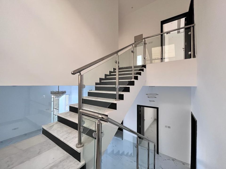 Step inside to find a well-designed layout that offers both space and privacy. The ground floor boasts a guest bedroom, providing ease and comfort for visiting family and friends. Ascend to the first floor, where four additional bedrooms await, each exuding a tranquil ambiance that promotes relaxation and tranquility.
