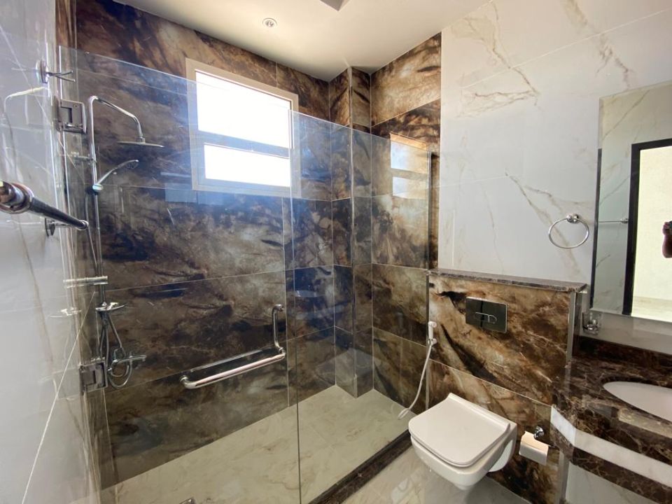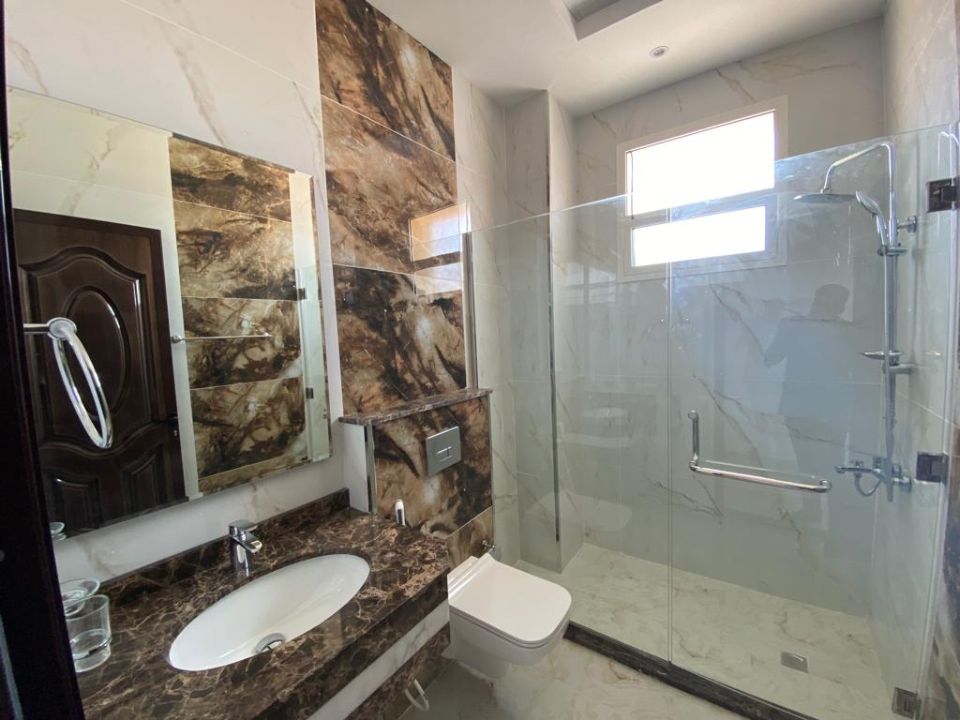 The villa is spread over two floors, with one guest bedroom, kitchen, dining room, TV lounge, maid's room, and storeroom on the ground floor. The remaining four bedrooms, each with built-in wardrobes, and a dry pantry, are on the first floor. One master bedroom with an attached bathroom is on the villa’s top floor. The villa has a super lux finish with excellent decorations, making it a unique and stylish property. The villa features a range of amenities designed to provide residents with a comfortable and convenient lifestyle, such as: