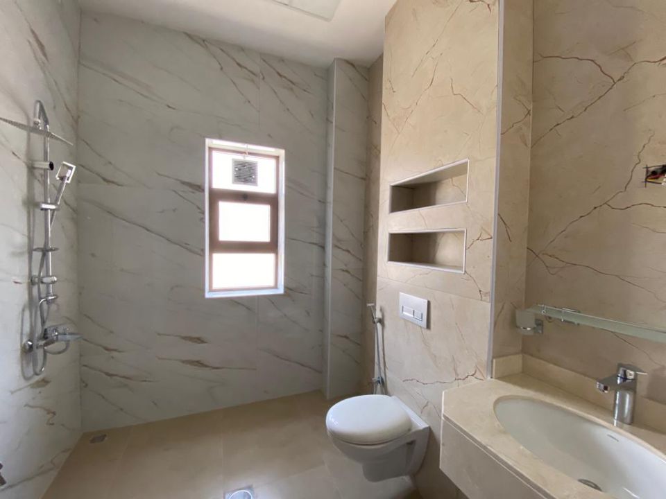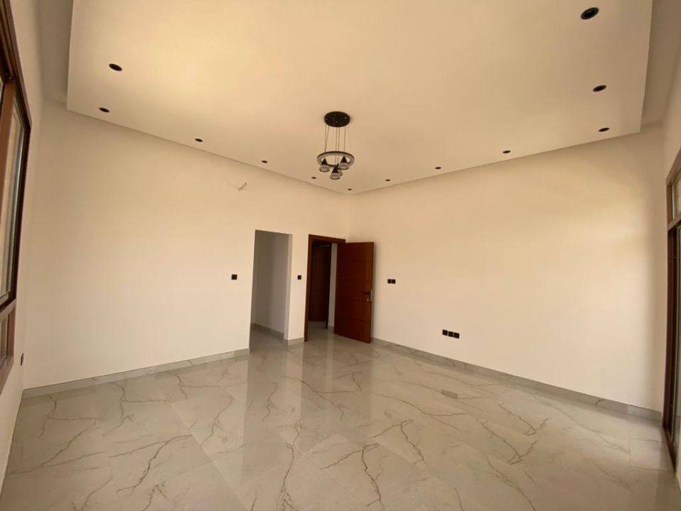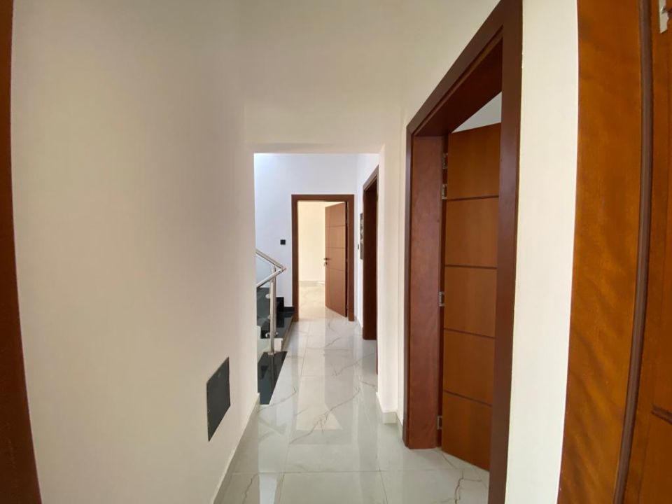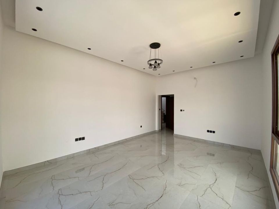 The villa is spread over two floors, with one guest bedroom, kitchen, dining room, TV lounge, maid's room, and storeroom on the ground floor. The remaining four bedrooms, each with built-in wardrobes, and a dry pantry, are on the first floor. The villa has a super lux finish with excellent decorations, making it a unique and stylish property. The villa features a range of amenities designed to provide residents with a comfortable and convenient lifestyle, such as: