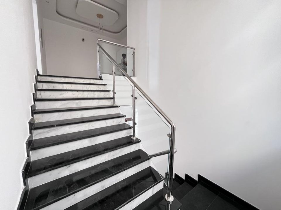 Step inside to find a well-designed layout that offers both space and privacy. The ground floor boasts a guest bedroom, providing ease and comfort for visiting family and friends. Ascend to the first floor, where four additional bedrooms await, each exuding a tranquil ambiance that promotes relaxation and tranquility.