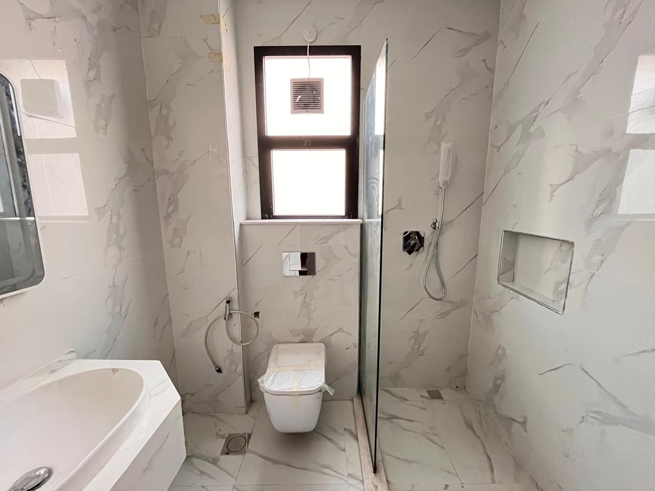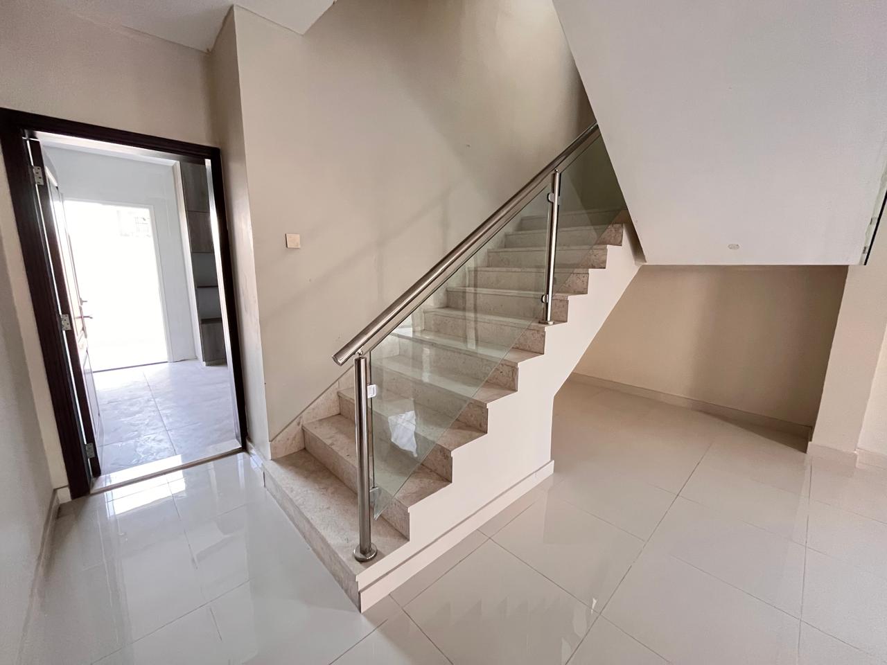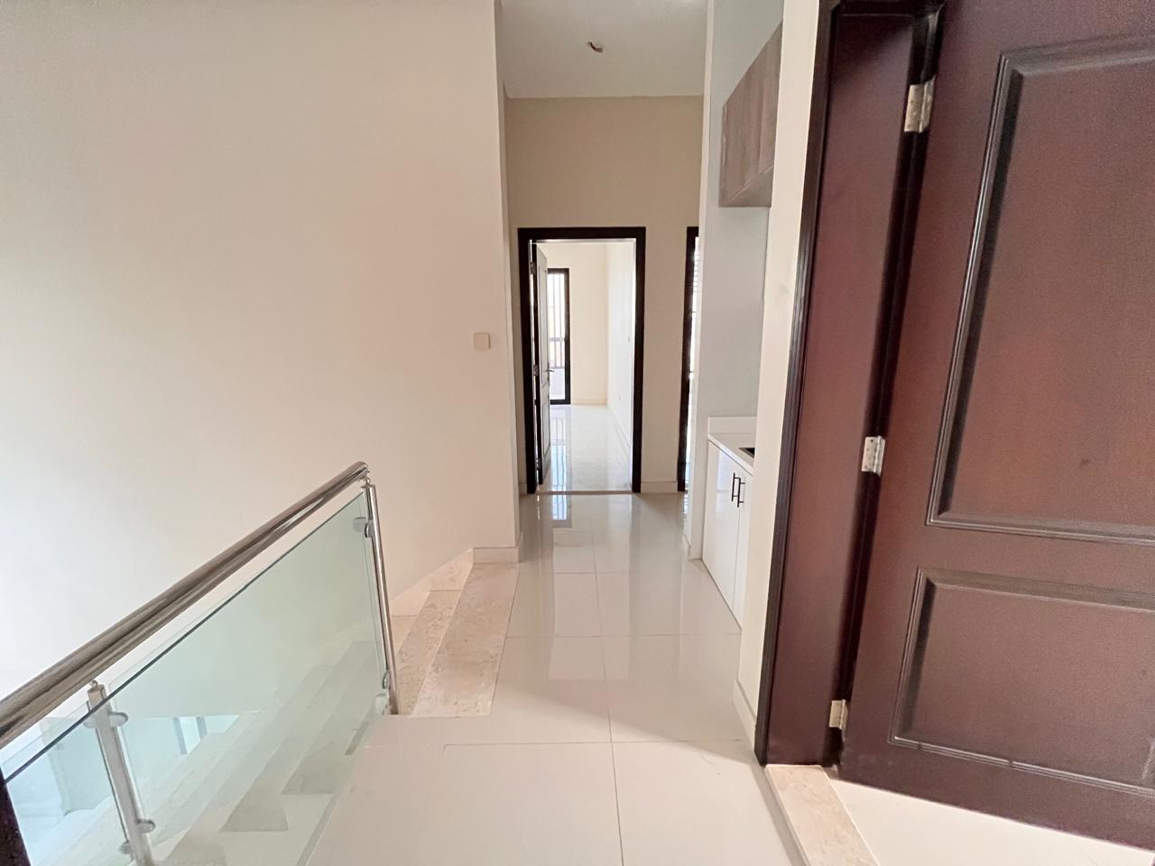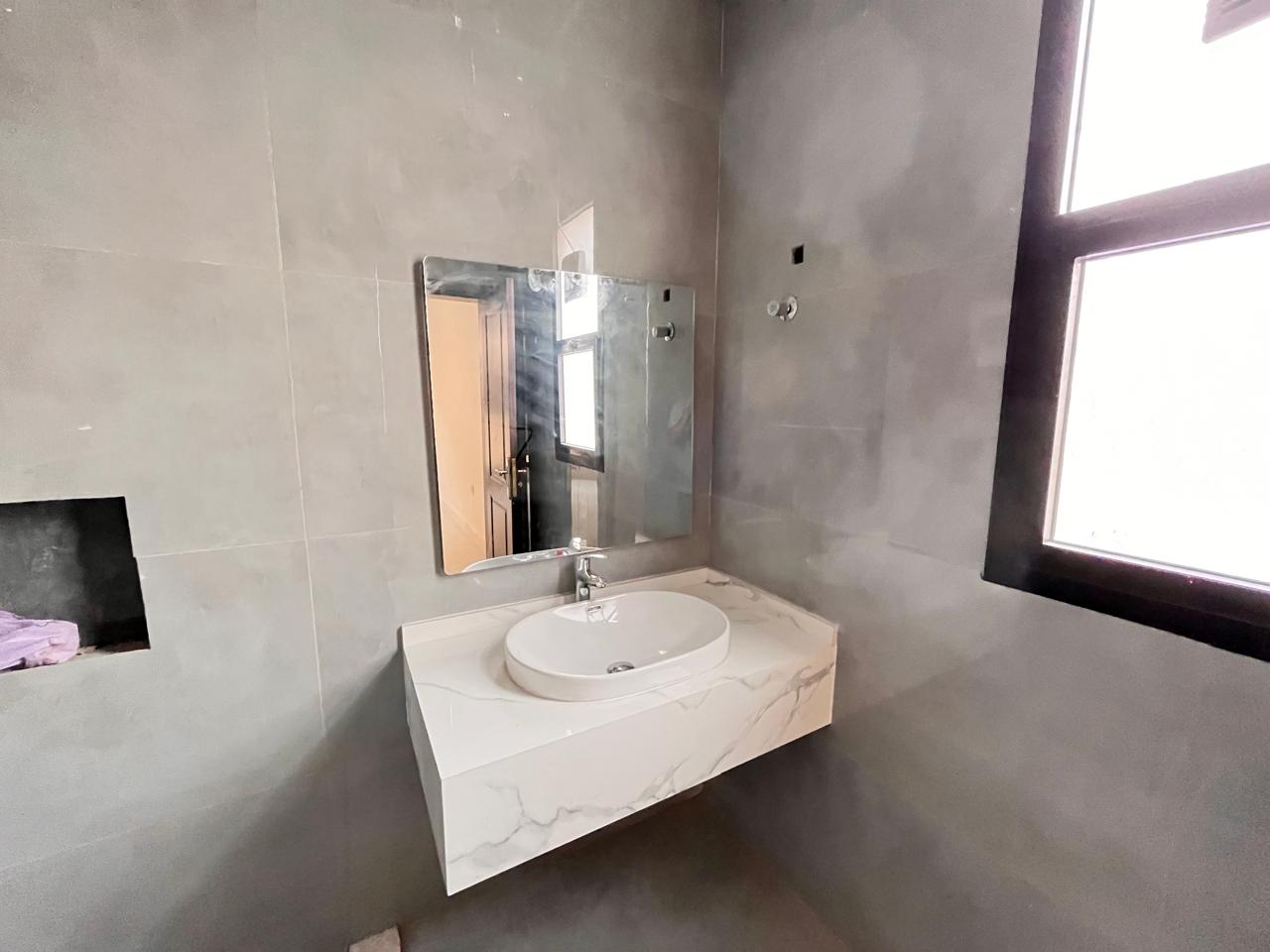 The master bedroom is a private and comfortable room with an adjacent bathroom and wardrobes. The other four bedrooms are of good size and could be used by family members, as hotel rooms, or as home offices. The bright interior features high-quality flooring, oversized windows, and neutral finishes.