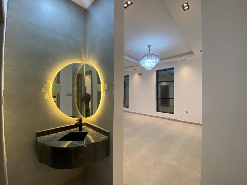 The Villa features a ground floor and a first floor, with each area thoughtfully designed to maximize comfort and functionality. The ground floor features a large living room and majlis with a bathroom with a separate entrance. Also, there is a fully equipped central kitchen, a maid's room with a bathroom, and ample indoor and outdoor parking.