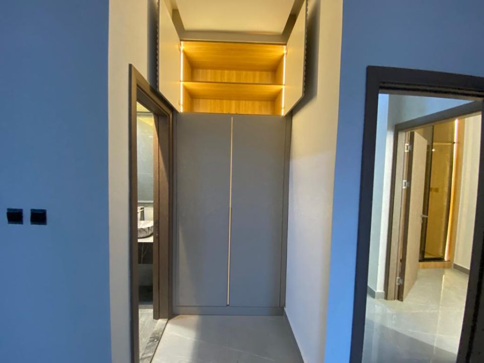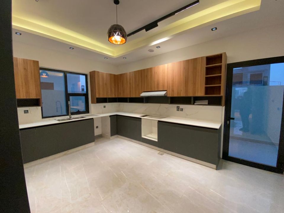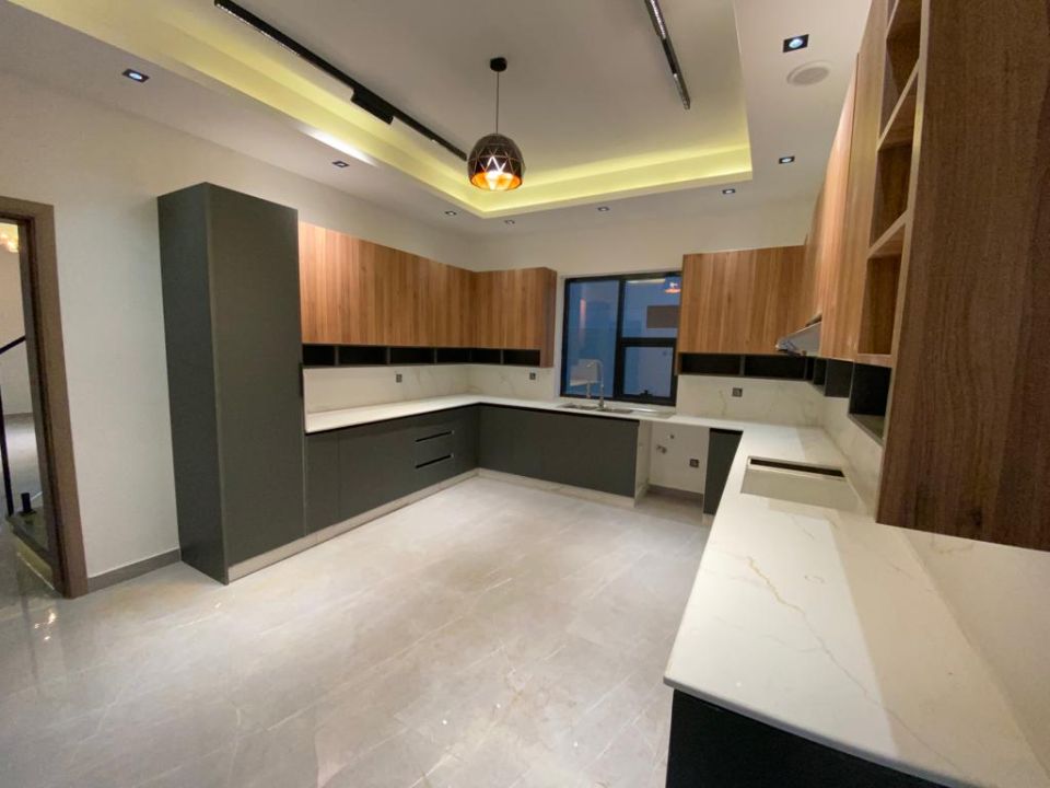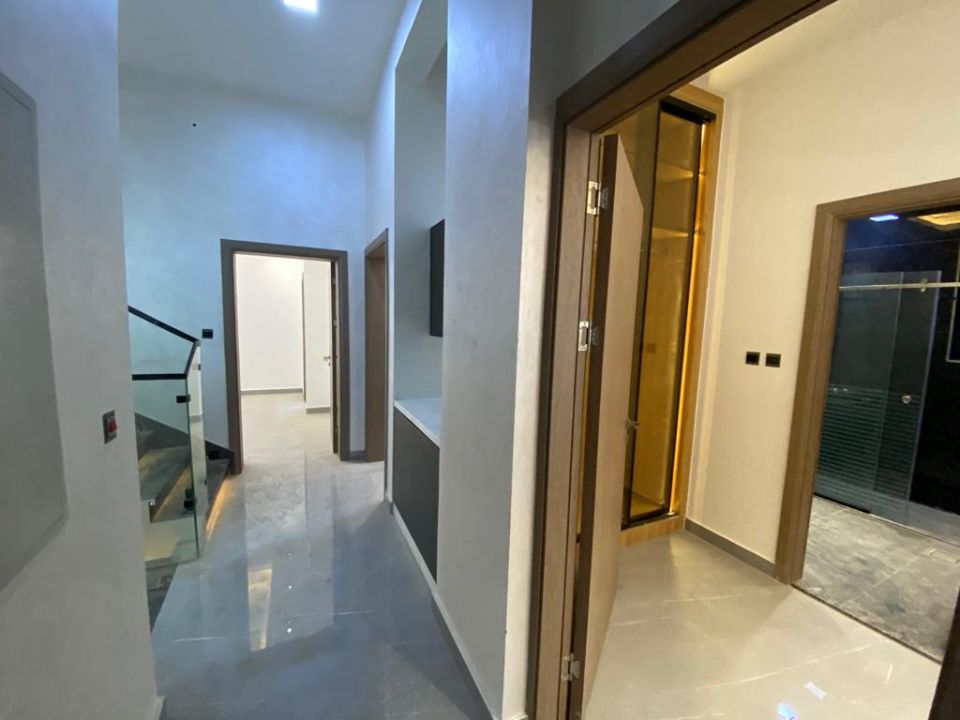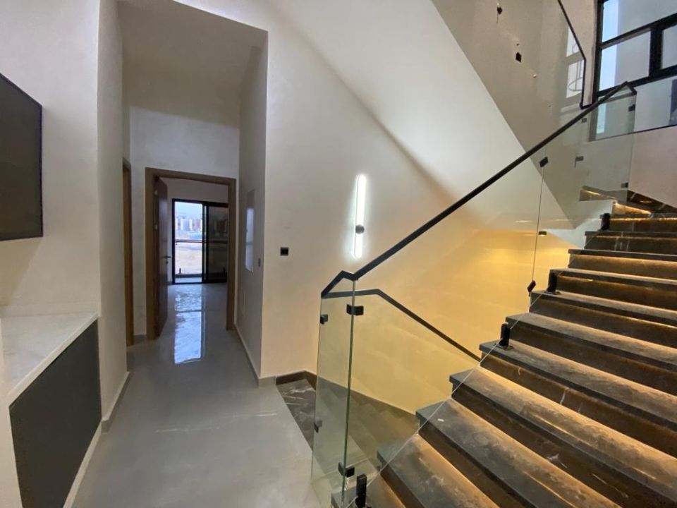 The villa is spread over two floors, with one bedroom, kitchen, dining room, TV lounge, maid's room, and storeroom on the ground floor. The remaining four bedrooms, each with built-in wardrobes, and a dry pantry, are on the first floor. The villa has a super lux finish with excellent decorations, making it a unique and stylish property. The villa features a range of amenities designed to provide residents with a comfortable and convenient lifestyle, such as: