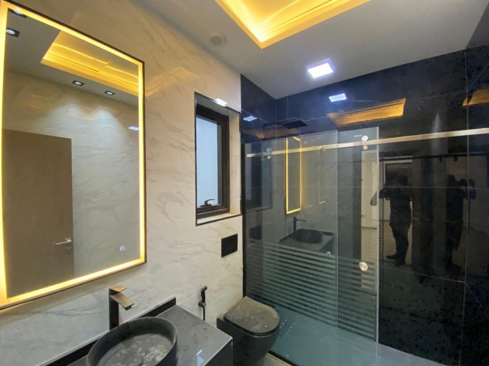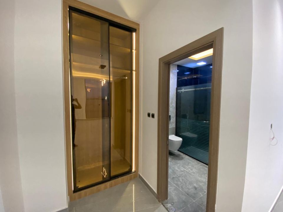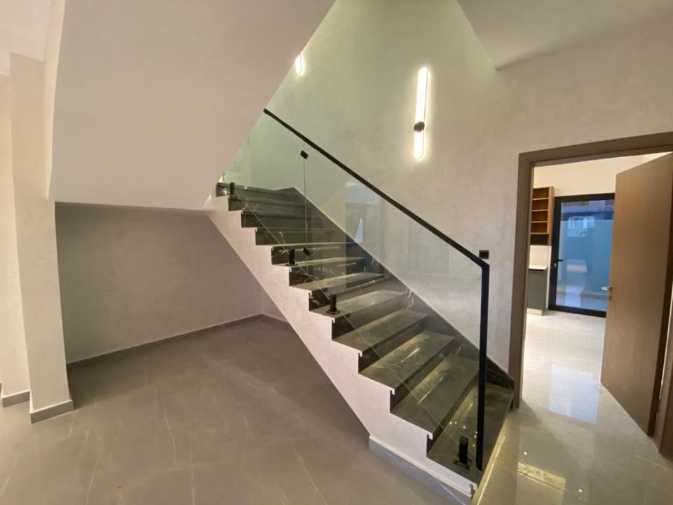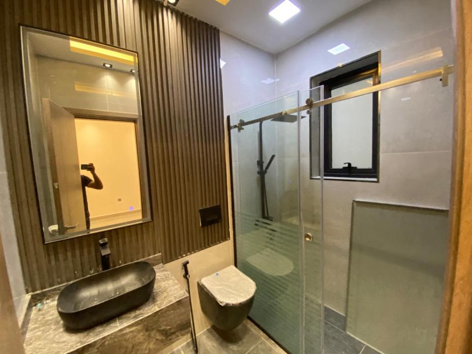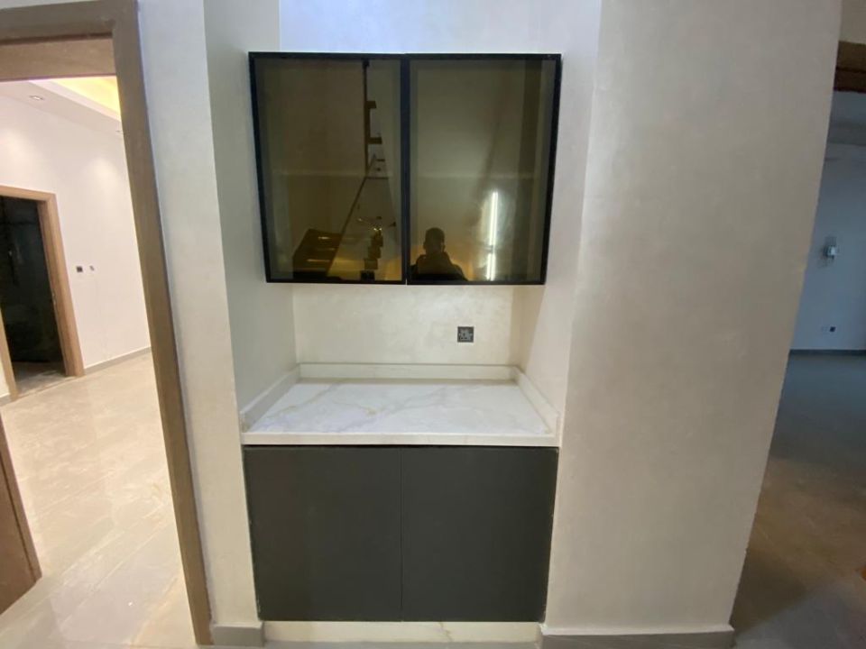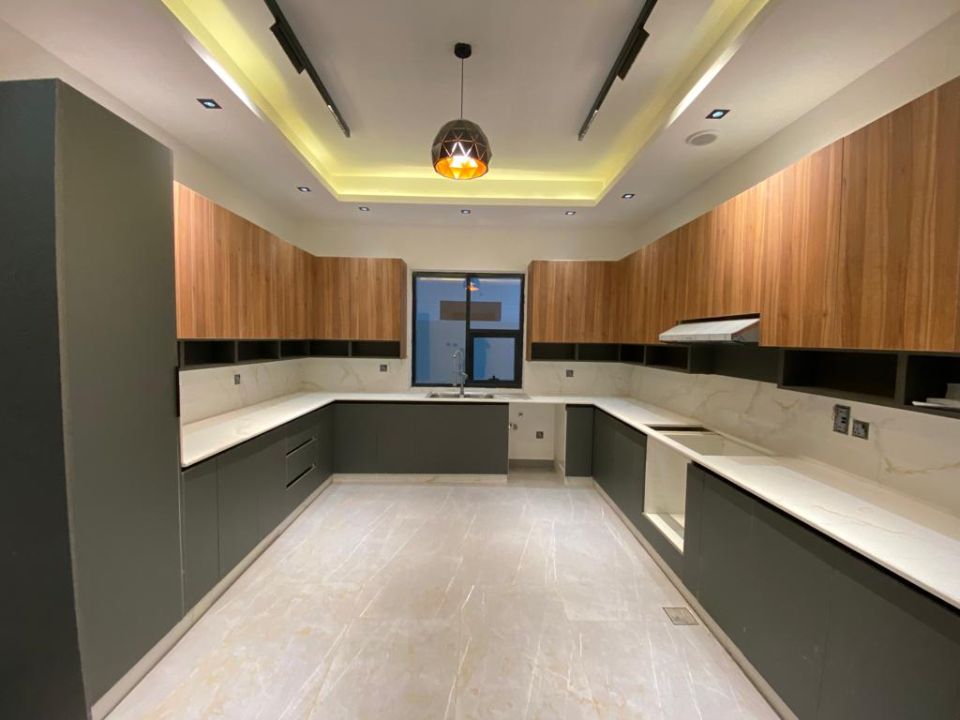 The villa is spread over two floors, with one bedroom, kitchen, dining room, TV lounge, maid's room, and storeroom on the ground floor. The remaining four bedrooms, each with built-in wardrobes, and a dry pantry, are on the first floor. The villa has a super lux finish with excellent decorations, making it a unique and stylish property. The villa features a range of amenities designed to provide residents with a comfortable and convenient lifestyle, such as: