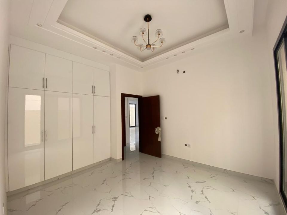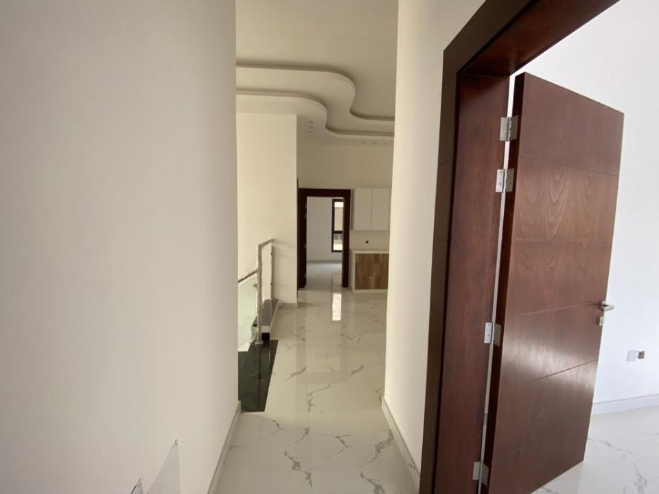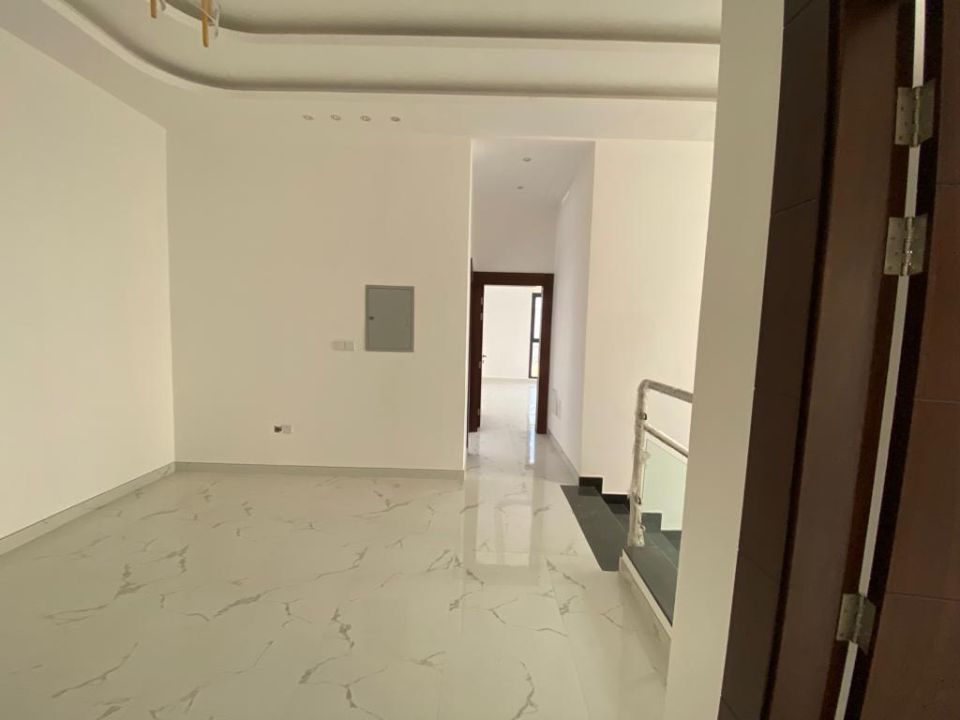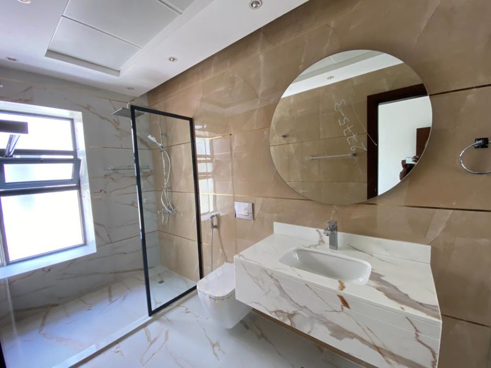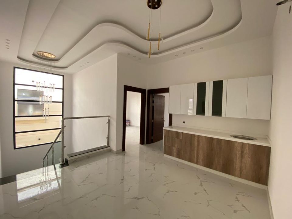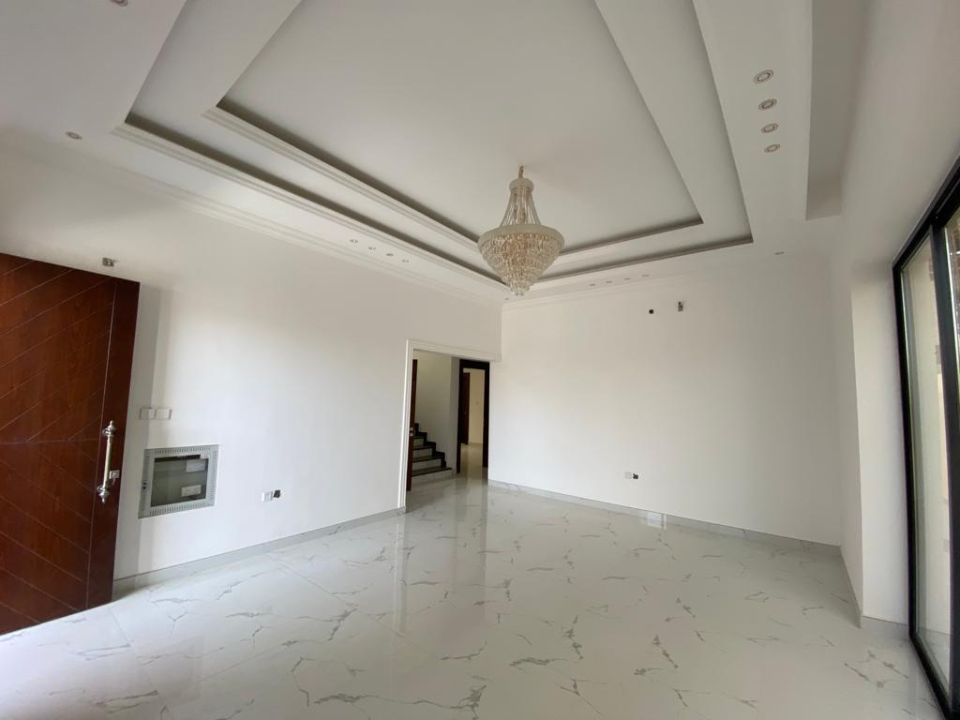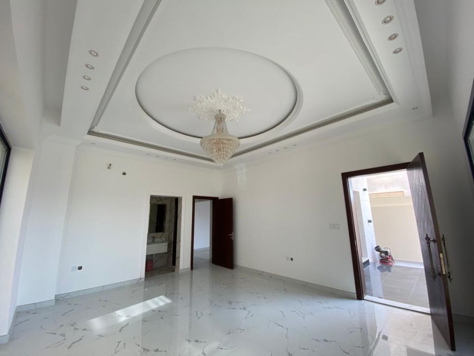 The villa is spread over two floors, with one guest bedroom, kitchen, dining room, TV lounge, maid's room, and storeroom on the ground floor. The remaining four bedrooms, each with built-in wardrobes and a dry pantry, are on the first floor. The villa has a super lux finish with excellent decorations, making it a unique and stylish property. The villa features a range of amenities designed to provide residents with a comfortable and convenient lifestyle, such as: