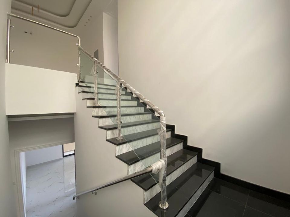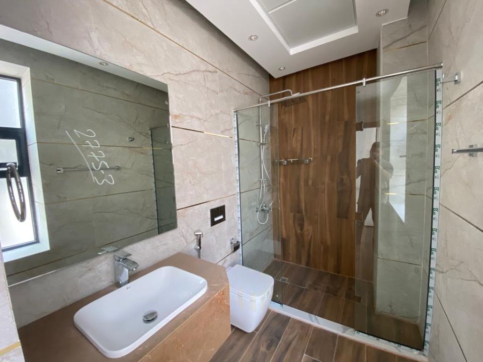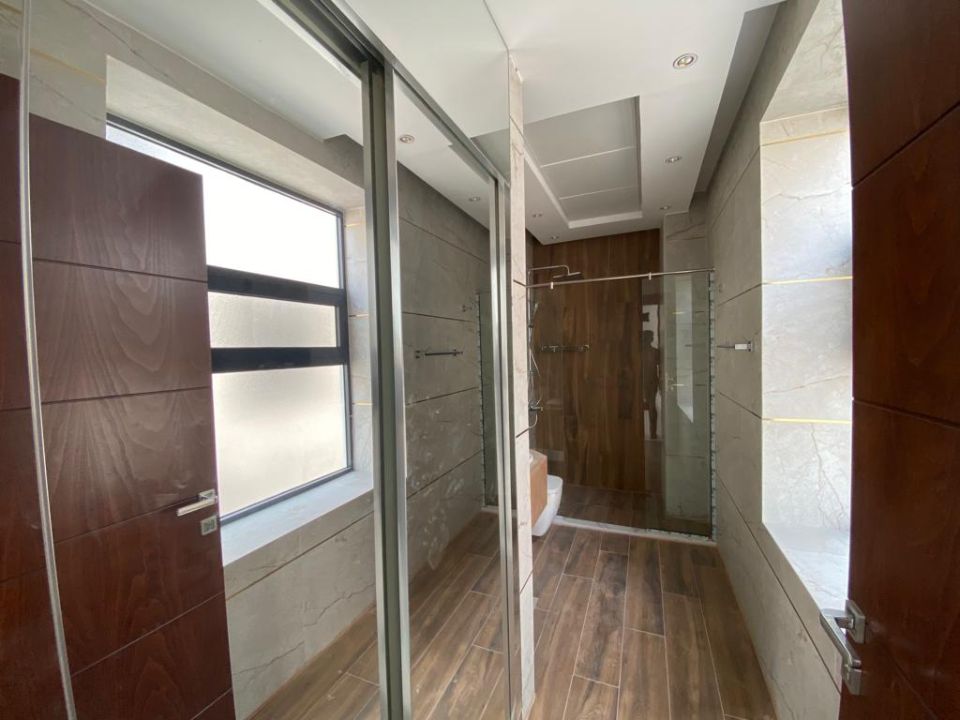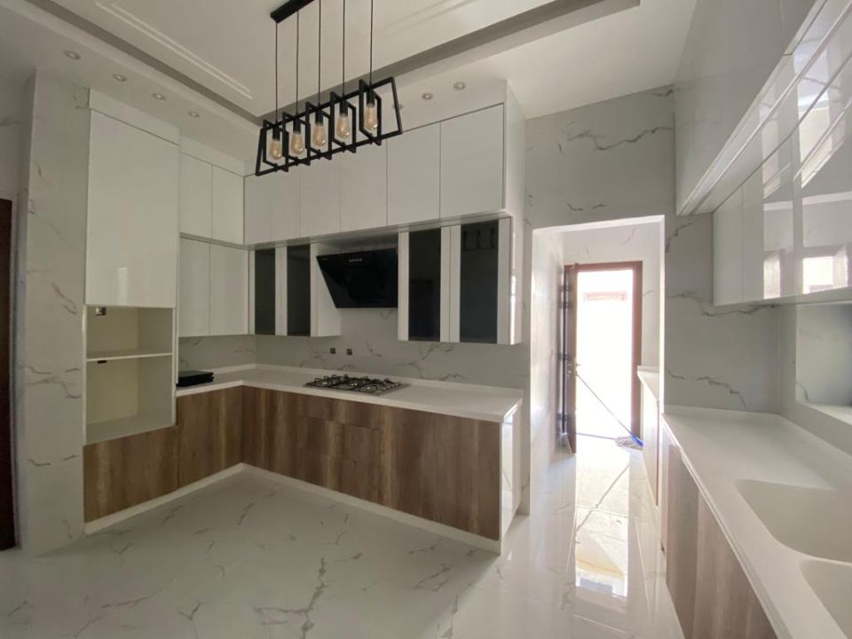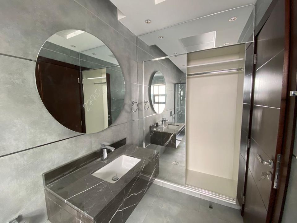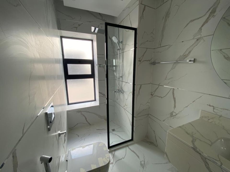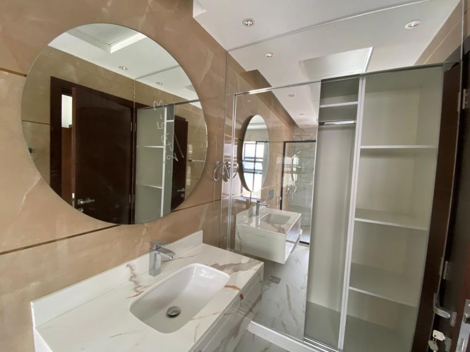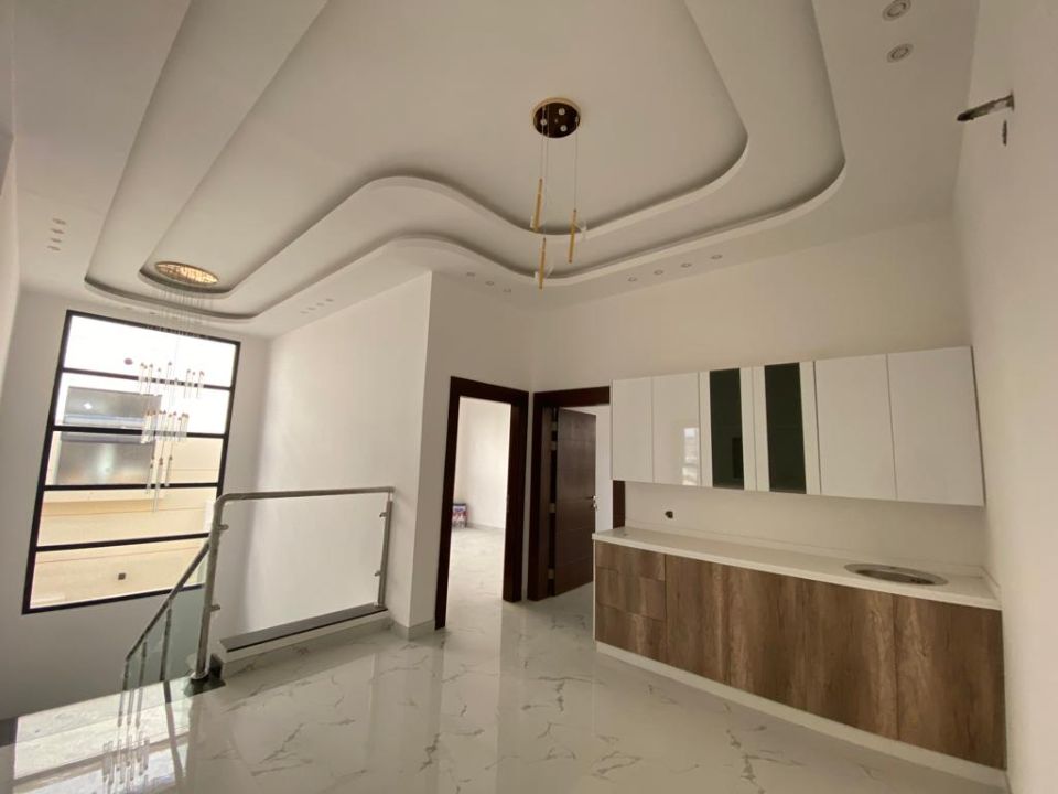 The villa is spread over two floors, with one guest bedroom, kitchen, dining room, TV lounge, maid's room, and storeroom on the ground floor. The remaining four bedrooms, each with built-in wardrobes and a dry pantry, are on the first floor. The villa has a super lux finish with excellent decorations, making it a unique and stylish property. The villa features a range of amenities designed to provide residents with a comfortable and convenient lifestyle, such as: