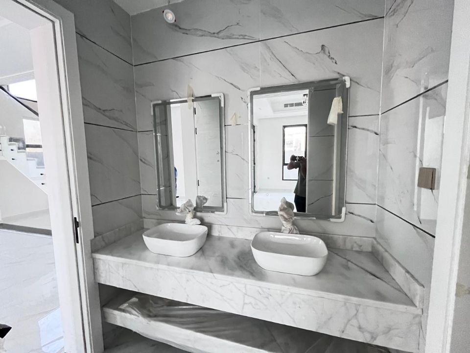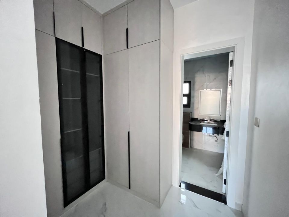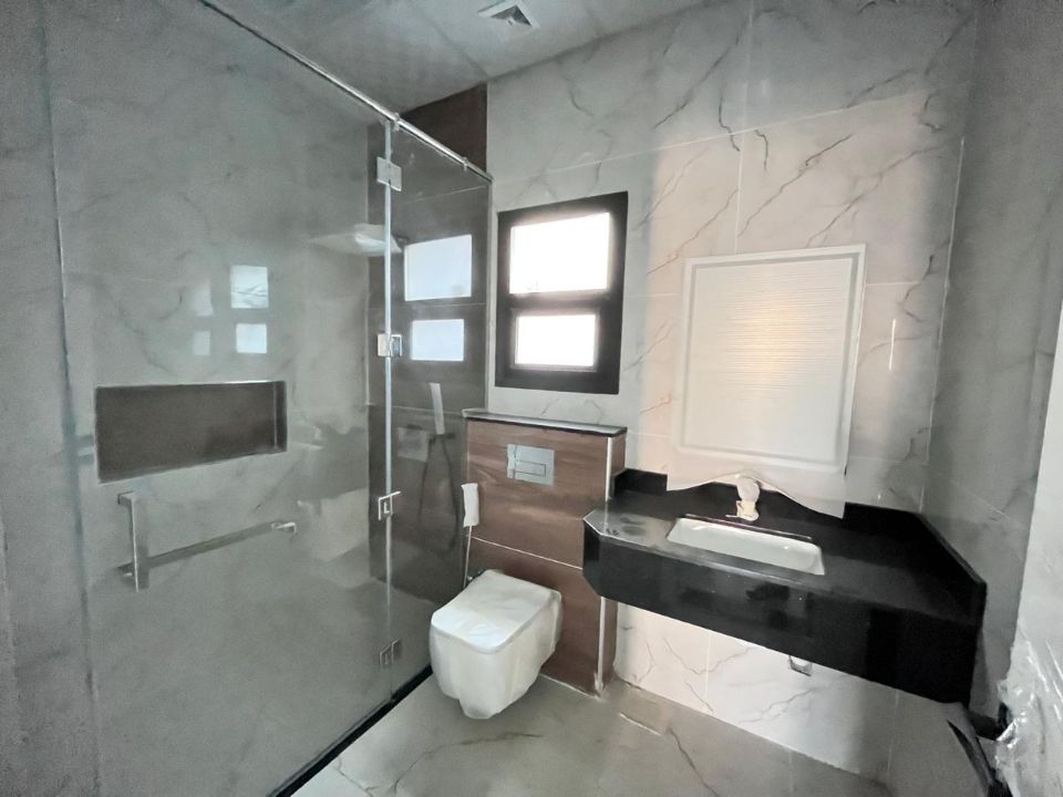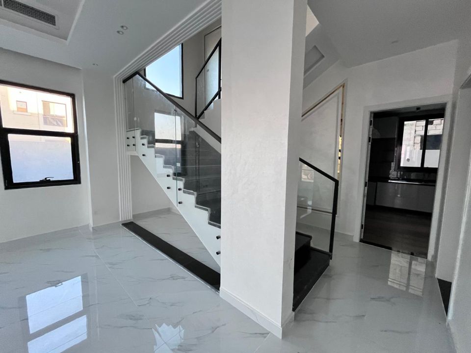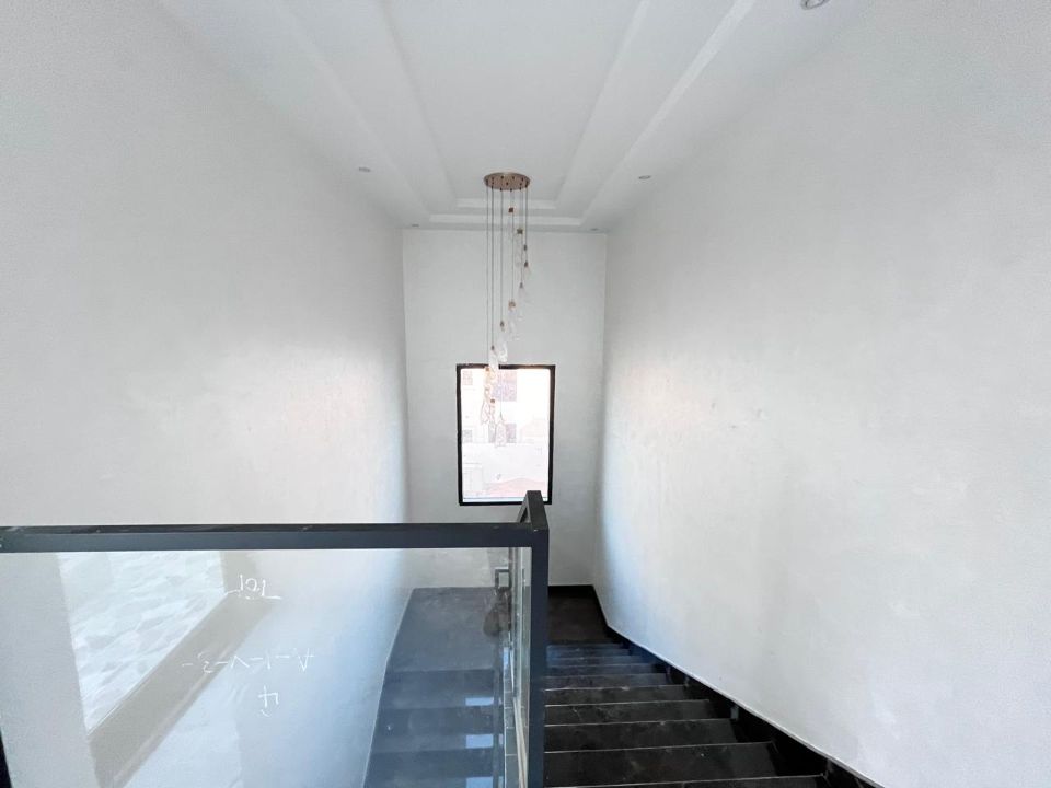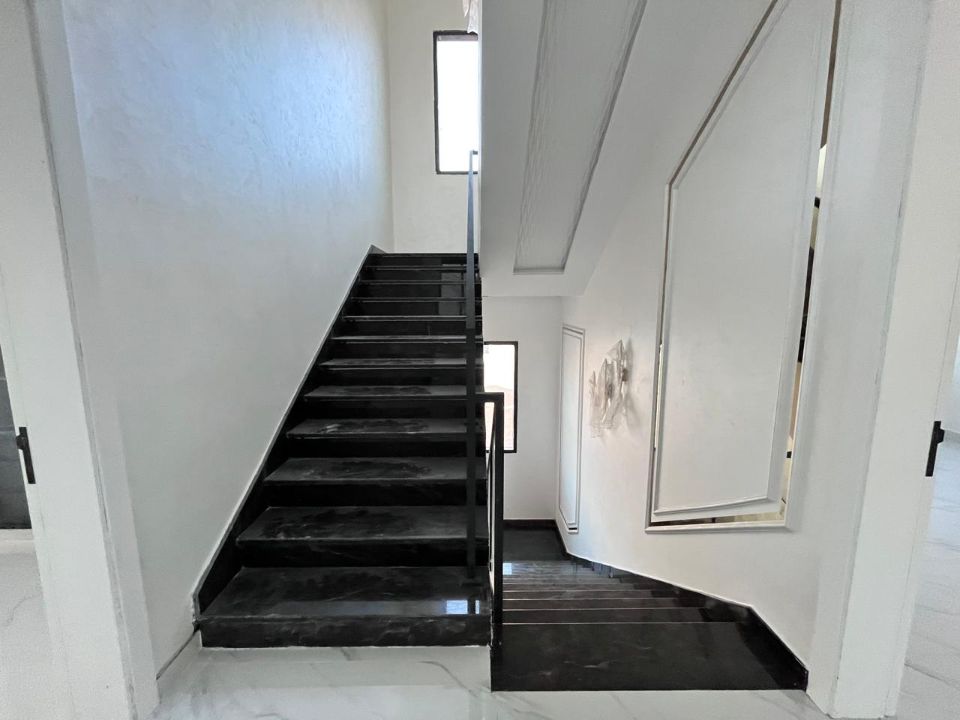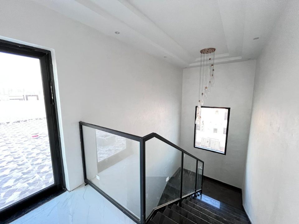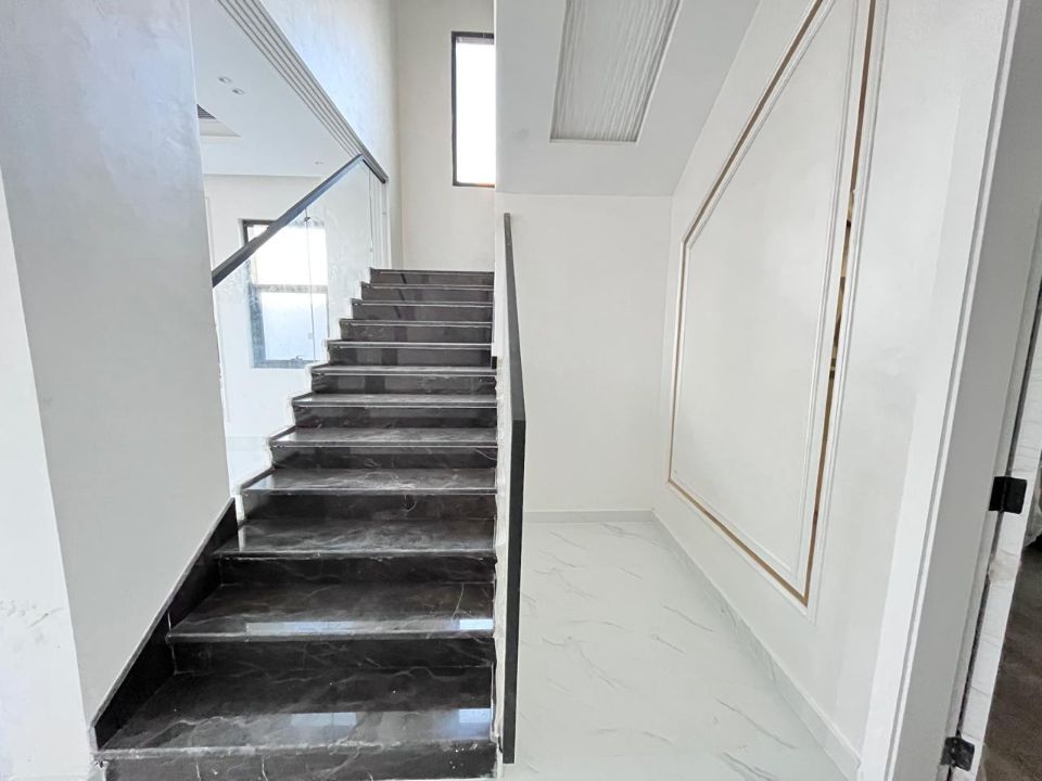 Spanning a generous 3900 square feet of land, the villa boasts a lush garden and beautifully designed living spaces. Thoughtfully crafted with luxurious touches, the property features a primary and preparatory kitchen, a grand living room, and a spacious hall, complemented by an additional upper hall on the second floor. With five master bedrooms featuring built-in closets and an adjoining master maid's room, this home provides ample space for family or guests.
