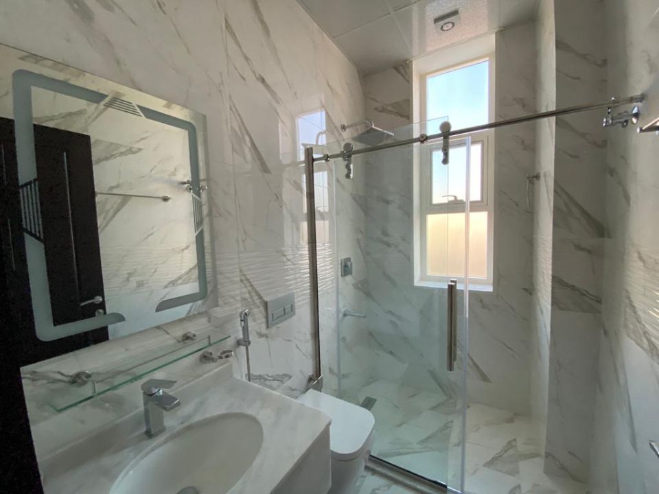 Upon entering the villa, you will also find a guest bedroom on the ground floor, making it convenient for guests or older family members who prefer to avoid climbing stairs. The villa is centrally air-conditioned and features double-glazed windows that offer stunning views of the surrounding area. The flooring has been carefully chosen to add a touch of elegance and sophistication to the property. The villa offers the following amenities: