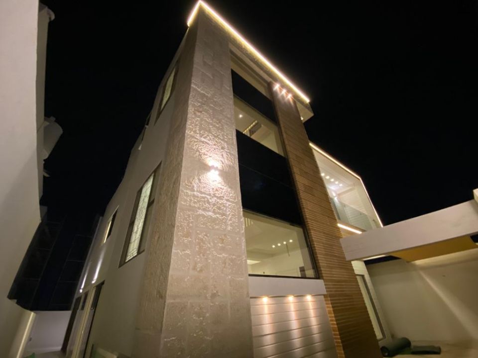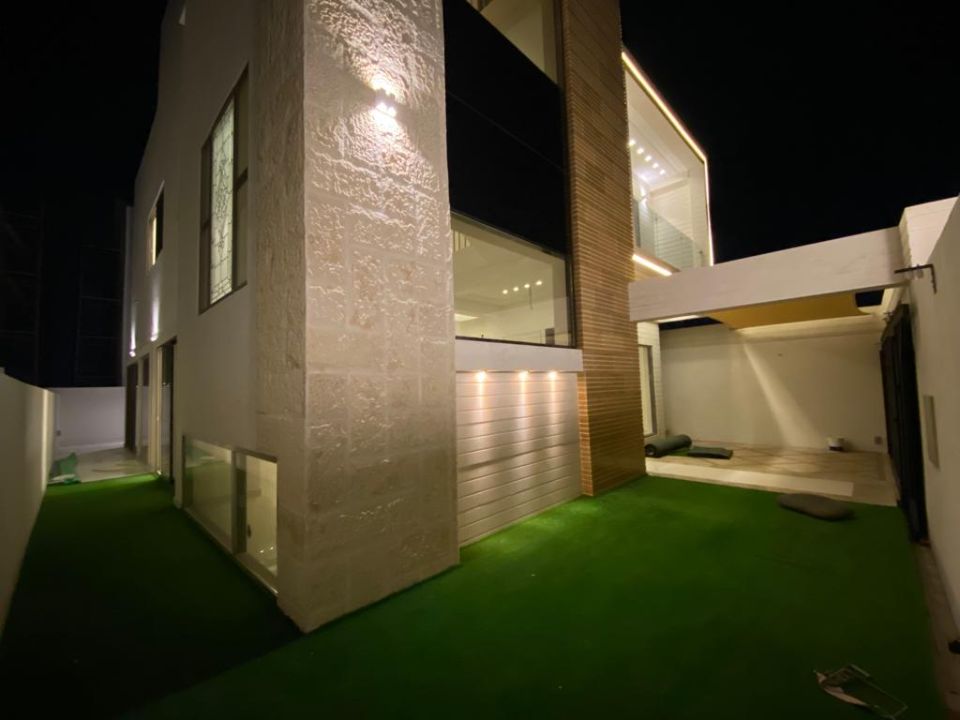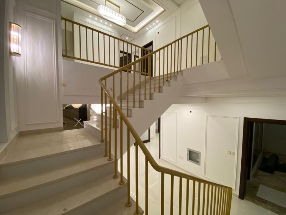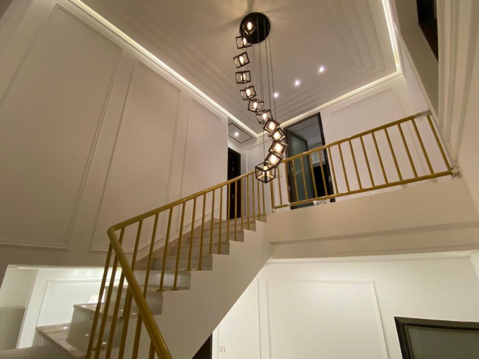 The villa is spread over two floors, with a guest bedroom, kitchen, dining room, TV lounge, maid's room, and storeroom on the ground floor. The remaining three bedrooms, each with built-in wardrobes and a dry pantry, are on the first floor, and one master bedroom with a big terrace is on the top floor. The villa has a super lux finish with excellent decorations, making it a unique and stylish property. The villa features a range of amenities designed to provide residents with a comfortable and convenient lifestyle.