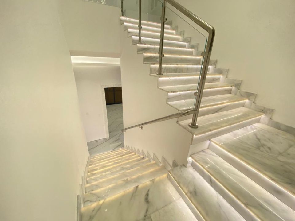 The villa’s first floor offers four master bedrooms with bathrooms and built-in wardrobes. Additionally, there is a distinctive loft preparatory kitchen and a balcony with a beautiful view. The villa does not have an open kitchen, which offers more privacy and allows the occupants to keep the kitchen area separate from the living spaces.