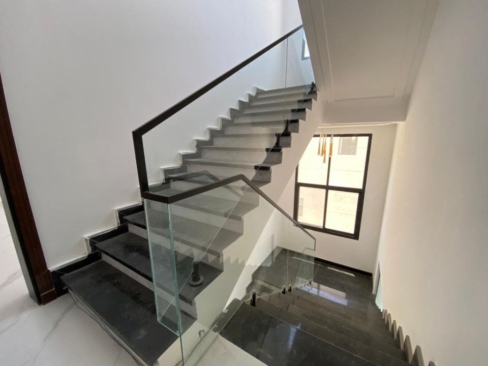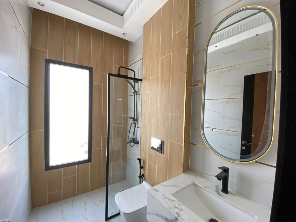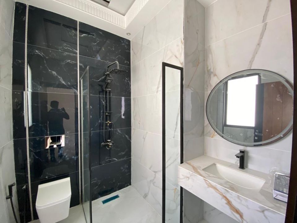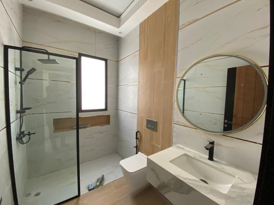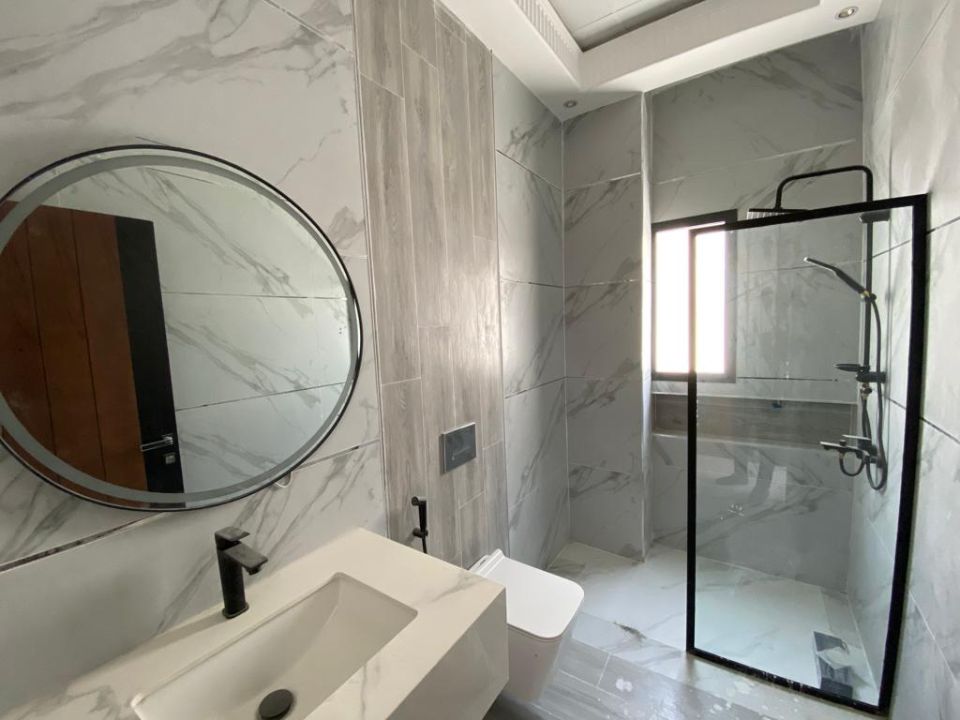 With 5 bedrooms and 6 bathrooms, this villa is perfect for families or individuals who want to live in style and comfort. The ground floor features a bedroom, kitchen, dining room, TV lounge, maid's room, and storage area. The first floor boasts 3 bedrooms with built-in wardrobes and a dry pantry, perfect for storing all your essentials.