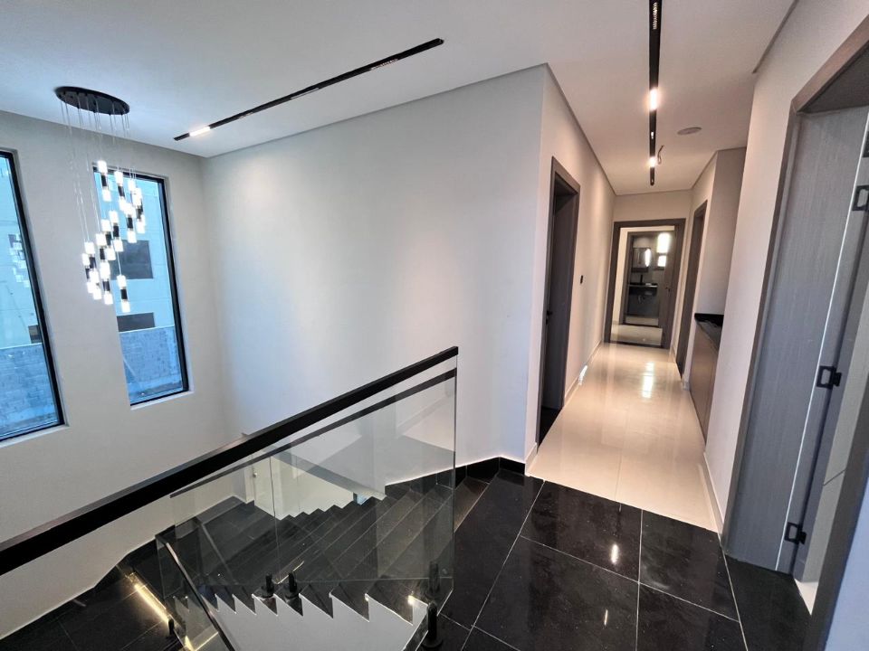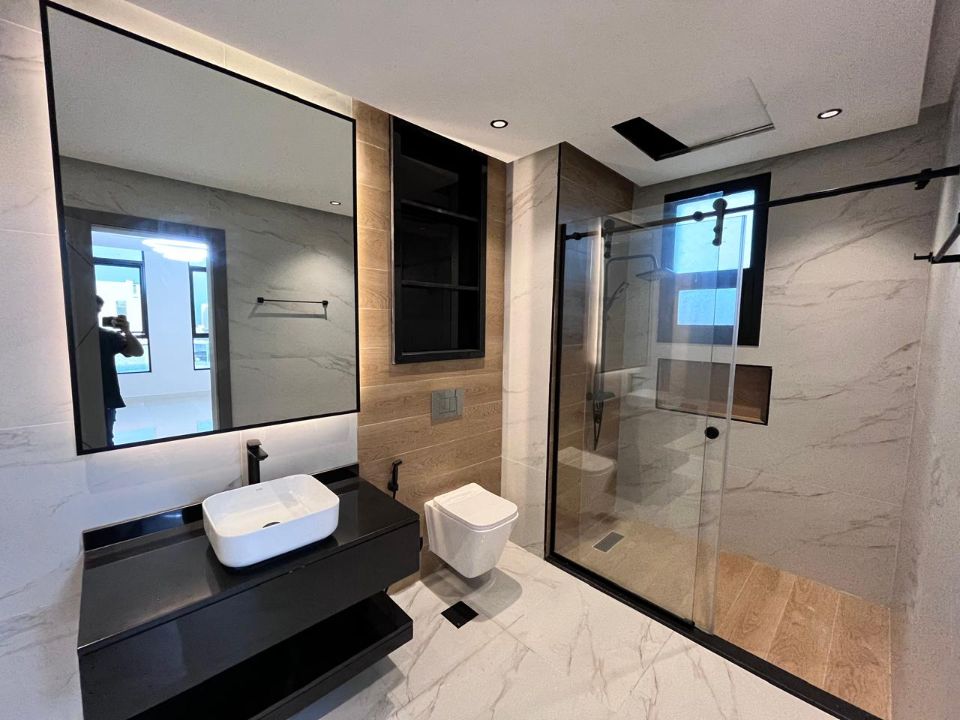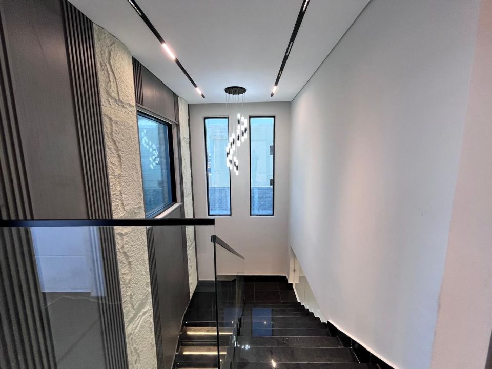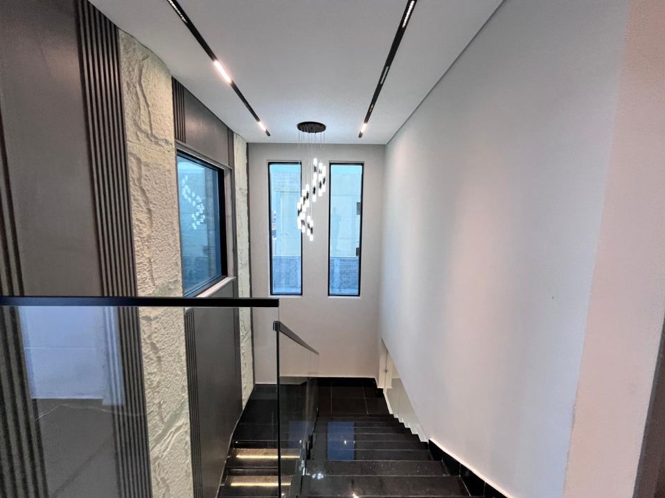 Spanning a generous 3400 square feet of land, the villa boasts a lush garden and beautifully designed living spaces. Thoughtfully crafted with luxurious touches, the property features a main and preparatory kitchen, a grand living room, and a spacious hall, complemented by an additional upper hall on the second floor. With five master bedrooms featuring built-in closets and an adjoining master maid's room, this home provides ample space for family or guests.