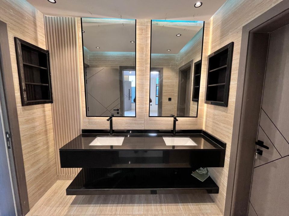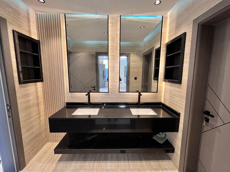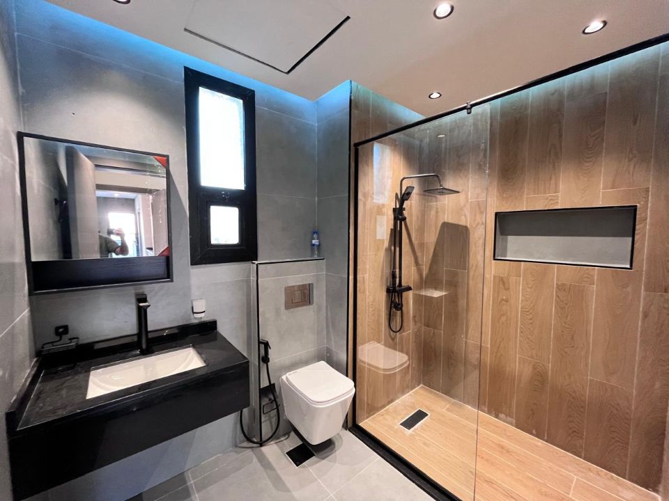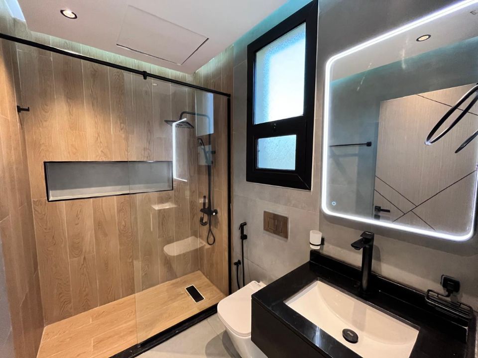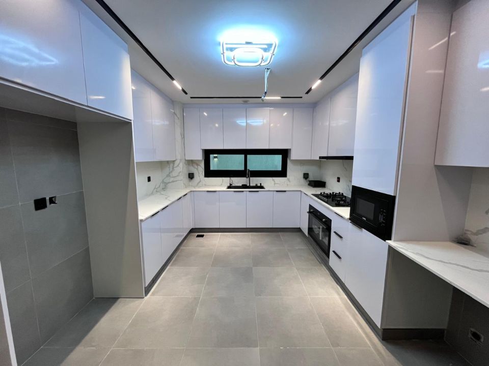 Spanning a generous 3400 square feet of land, the villa boasts a lush garden and beautifully designed living spaces. Thoughtfully crafted with luxurious touches, the property features a main and preparatory kitchen, a grand living room, and a spacious hall, complemented by an additional upper hall on the second floor. With five master bedrooms featuring built-in closets and an adjoining master maid's room, this home provides ample space for family or guests.
