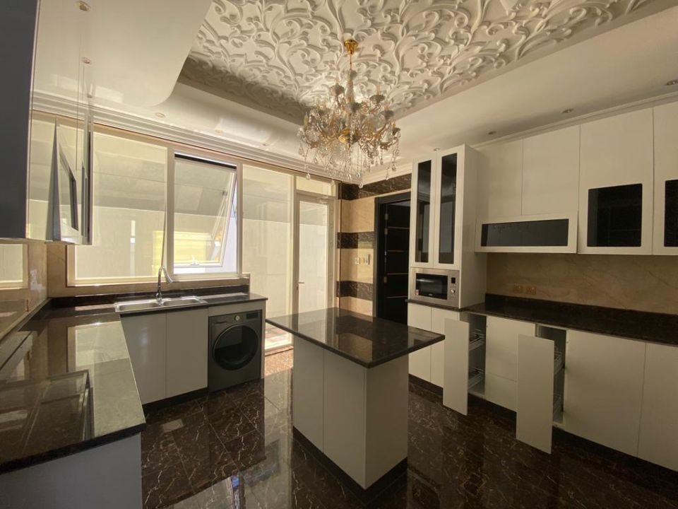 The villa’s first floor offers four master bedrooms with bathrooms and built-in wardrobes. Additionally, there is a distinctive loft preparatory kitchen and a balcony with a beautiful view. The villa does not have an open kitchen, which offers more privacy and allows the occupants to keep the kitchen area separate from the living spaces.