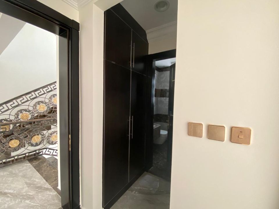 The villa’s ground floor is designed for the family's daily living needs. It has a fantastic guest bedroom with a bathroom. It also involves a modernized kitchen, a maid’s room with a bathroom, and a wonderful parking space. The villa also has a significant extension in front of the property, providing additional outdoor space for family gatherings and events.