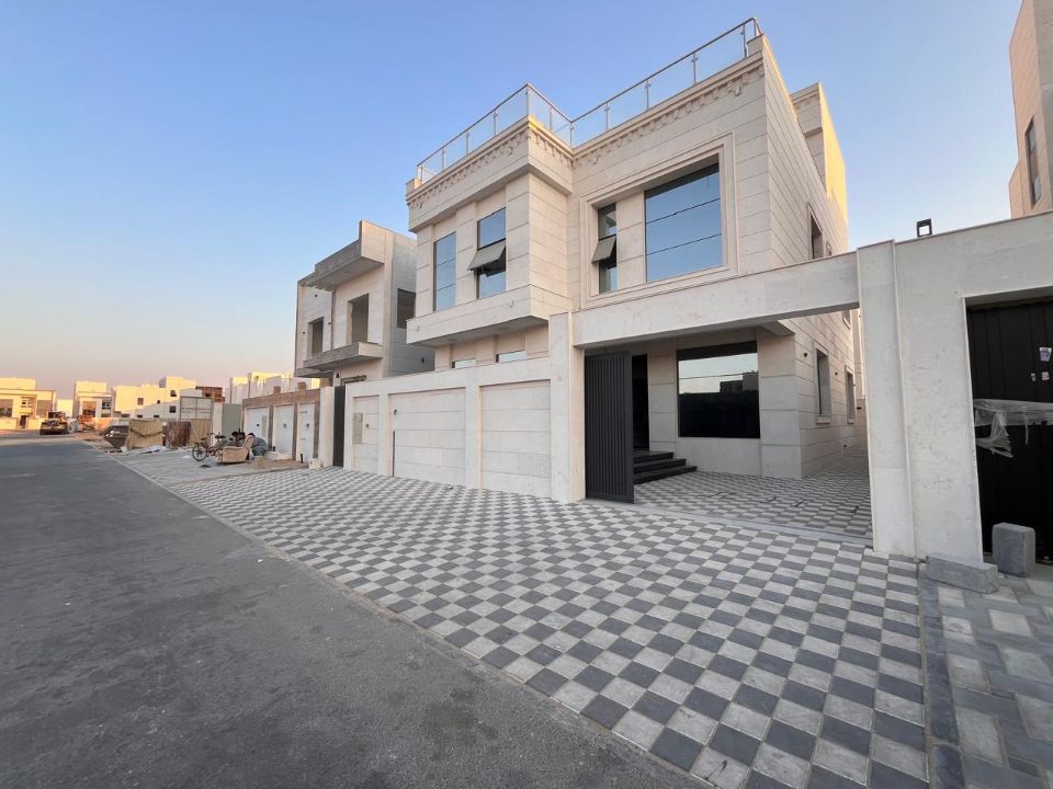 | Al Yasmeen Discover this exquisite five-bedroom villa for sale in the highly sought-after neighborhood of Ajman. Perfectly situated on Sheikh Mohammad bin Zayed Road, this villa blends contemporary living with timeless elegance. Offering easy access to Sharjah and Dubai, it's an ideal home for commuters and families alike. The villa is set within a secure, gated community, ensuring a peaceful and private living experience.