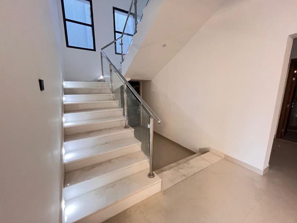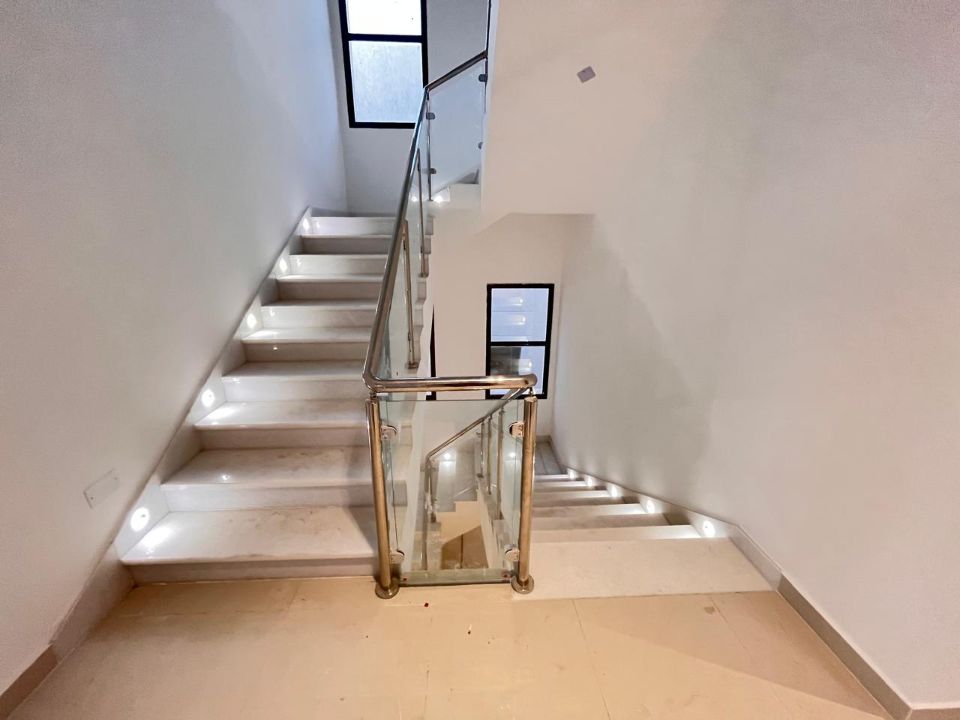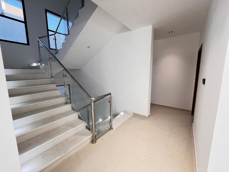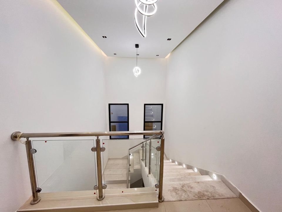 Spanning a generous 3800 square feet of land, the villa boasts a lush garden and beautifully designed living spaces. Thoughtfully crafted with luxurious touches, the property features a primary and preparatory kitchen, a grand living room, and a spacious hall, complemented by an additional upper hall on the second floor. With five master bedrooms featuring built-in closets and an adjoining master maid's room, this home provides ample space for family or guests.