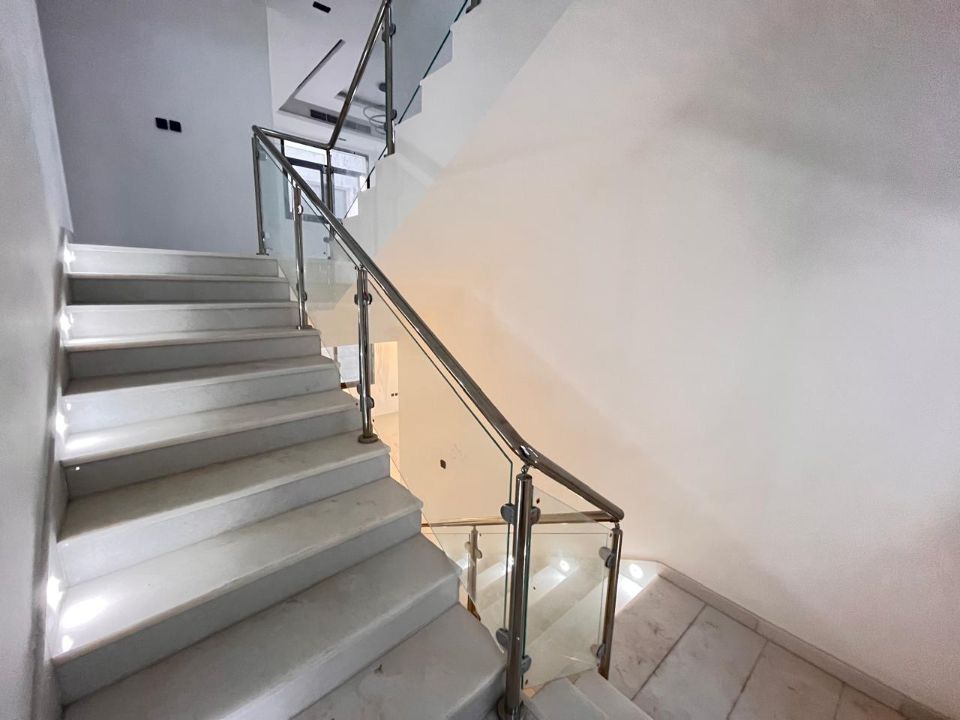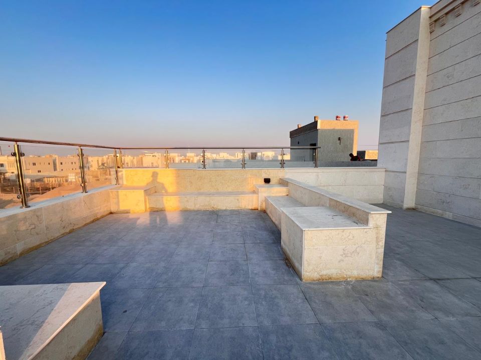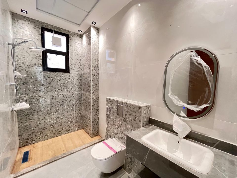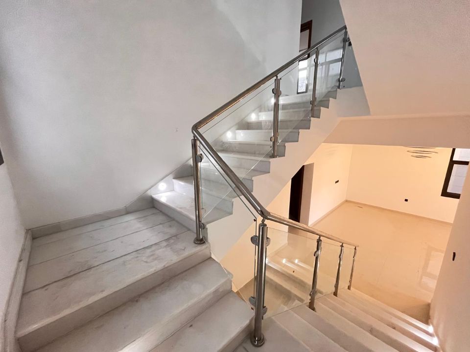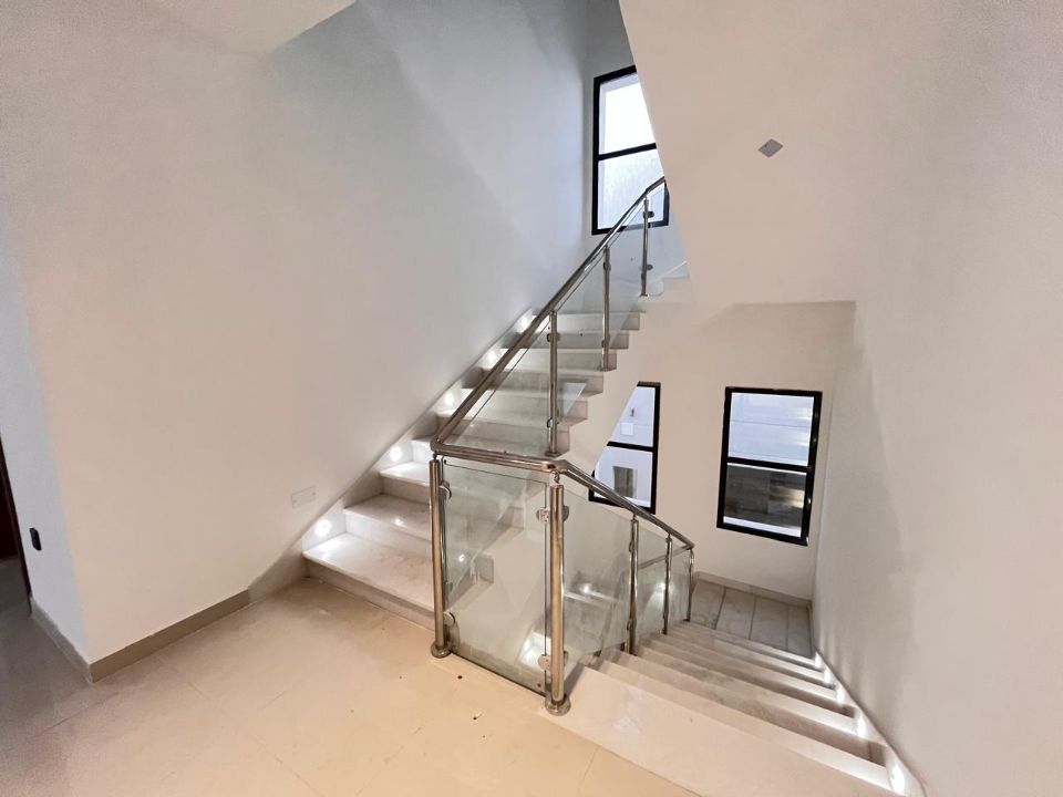 Spanning a generous 3800 square feet of land, the villa boasts a lush garden and beautifully designed living spaces. Thoughtfully crafted with luxurious touches, the property features a primary and preparatory kitchen, a grand living room, and a spacious hall, complemented by an additional upper hall on the second floor. With five master bedrooms featuring built-in closets and an adjoining master maid's room, this home provides ample space for family or guests.
