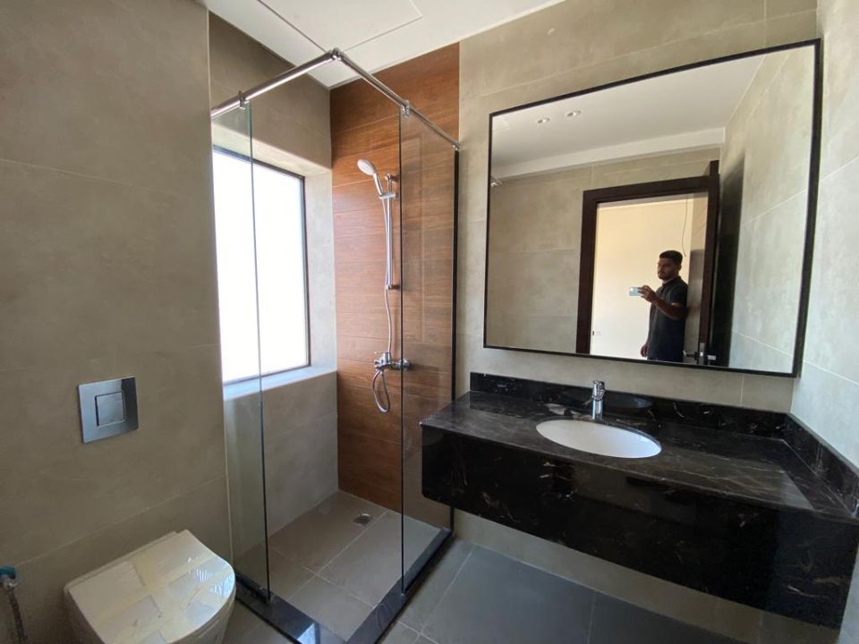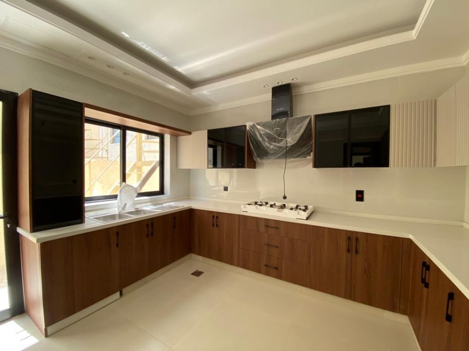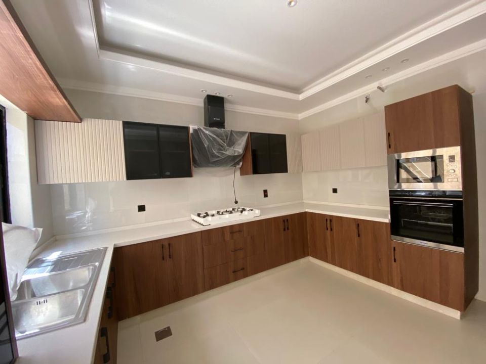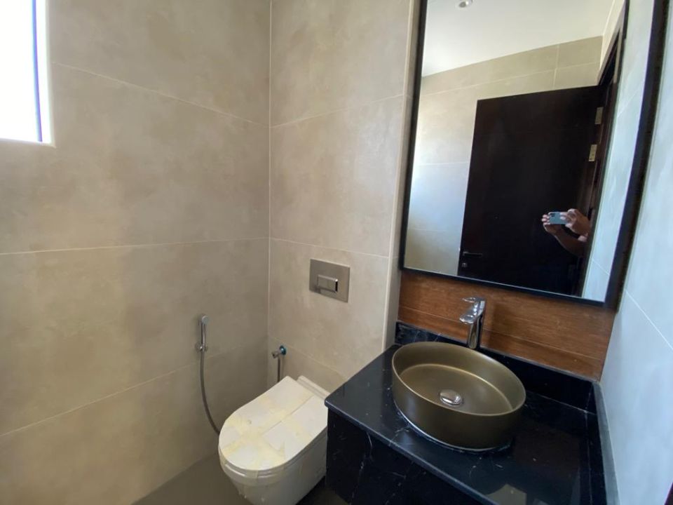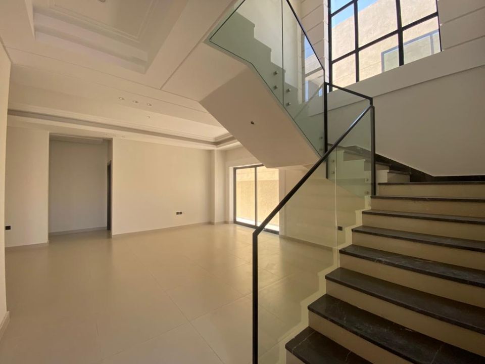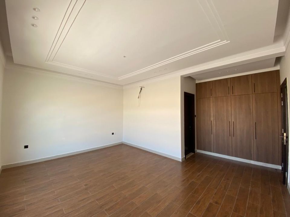 The villa is spread over two floors, with a guest bedroom, kitchen, dining room, TV lounge, maid's room, and storeroom on the ground floor. The remaining four bedrooms, each with built-in wardrobes and attached bathrooms,, are on the first floor. The villa has a super lux finish with excellent decorations, making it a unique and stylish property. The villa features a range of amenities designed to provide residents with a comfortable and convenient lifestyle.