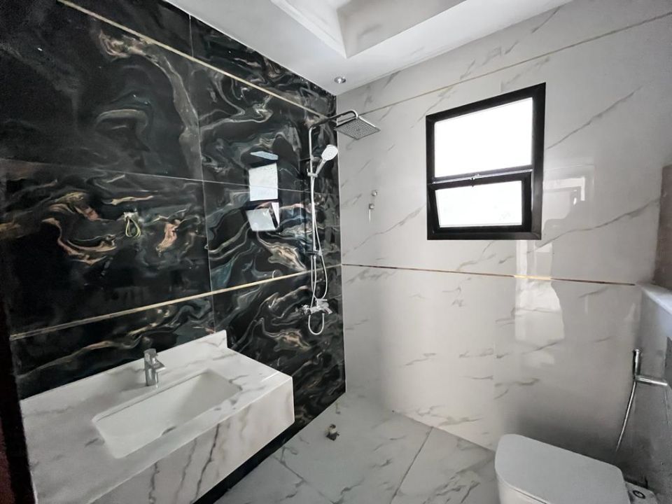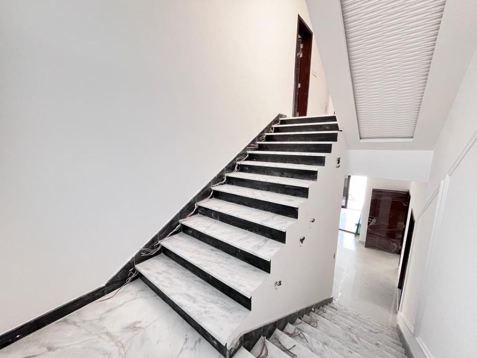 Step inside to find a well-designed layout that offers both space and privacy. The ground floor boasts a guest bedroom, providing ease and comfort for visiting family and friends. Ascend to the first floor, where four additional bedrooms await, each exuding a tranquil ambiance that promotes relaxation and tranquility.