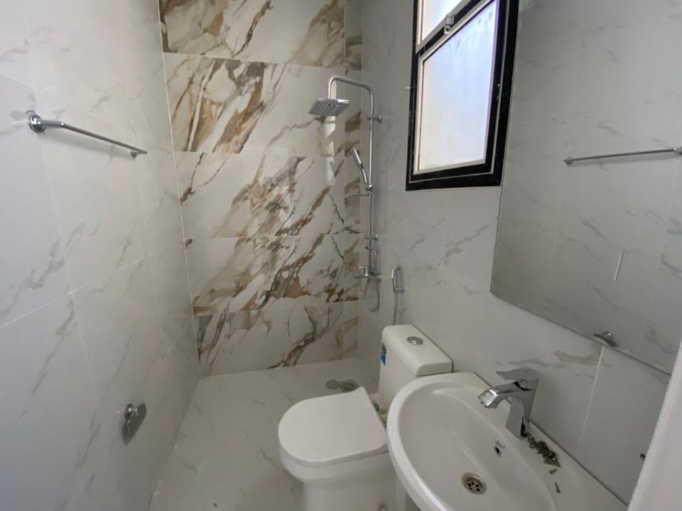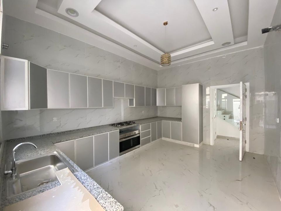 With 5 bedrooms and seven bathrooms, this townhouse is perfect for families or individuals who want to live in style and comfort. The ground floor features a bedroom, kitchen, dining room, TV lounge, maid's room, and storage area. The first floor boasts four bedrooms with built-in wardrobes and a dry pantry, perfect for storing all your essentials.