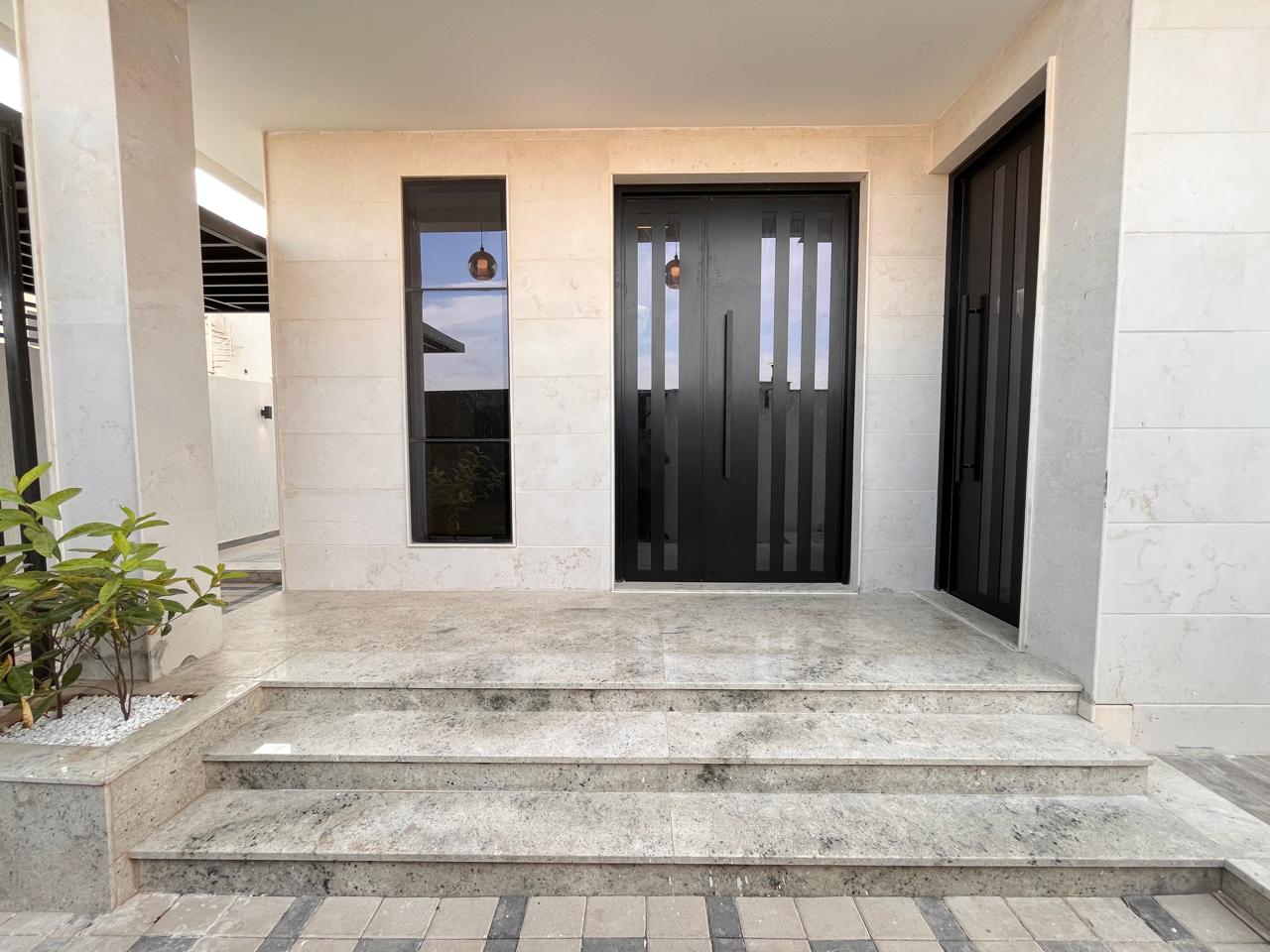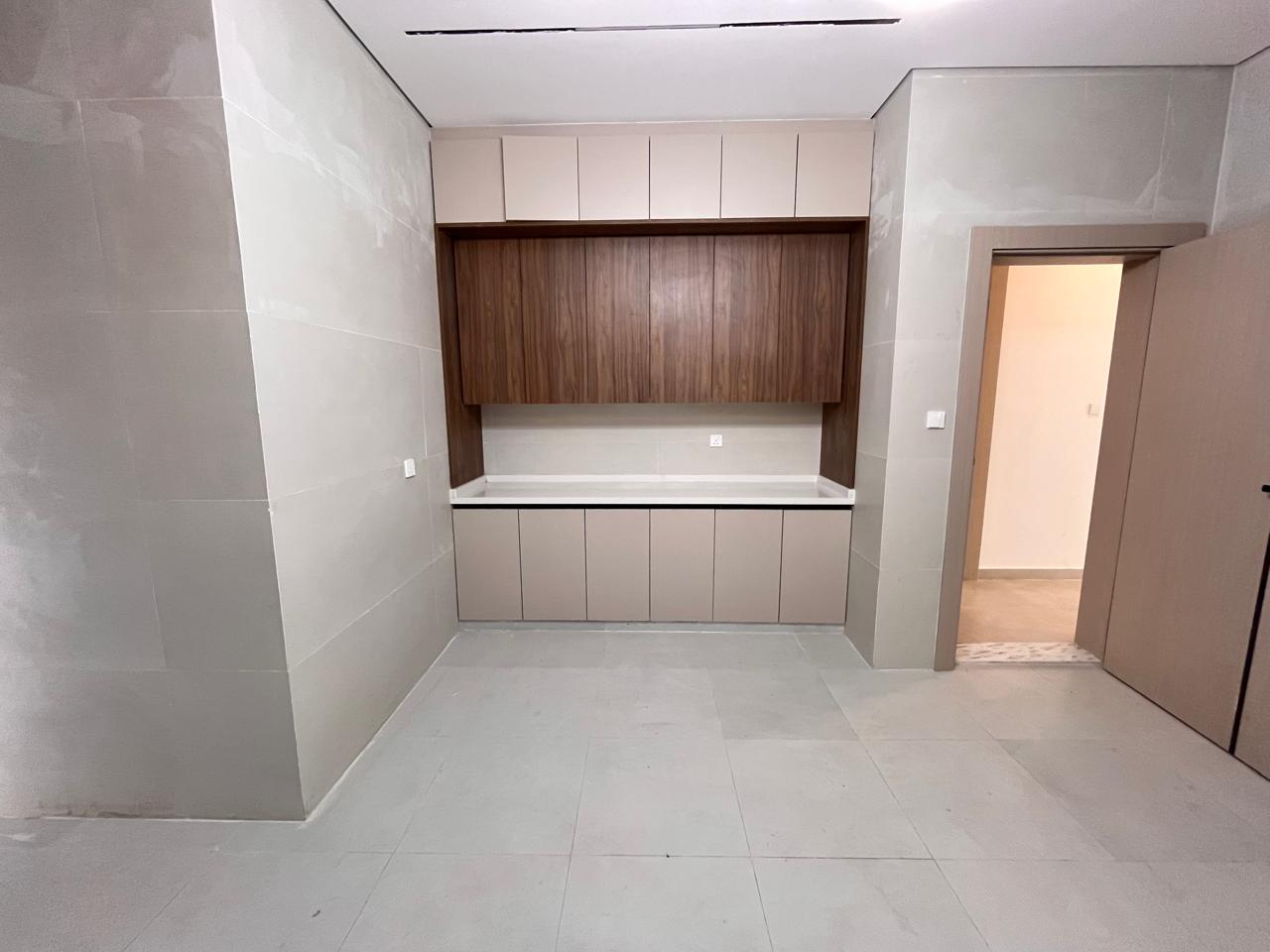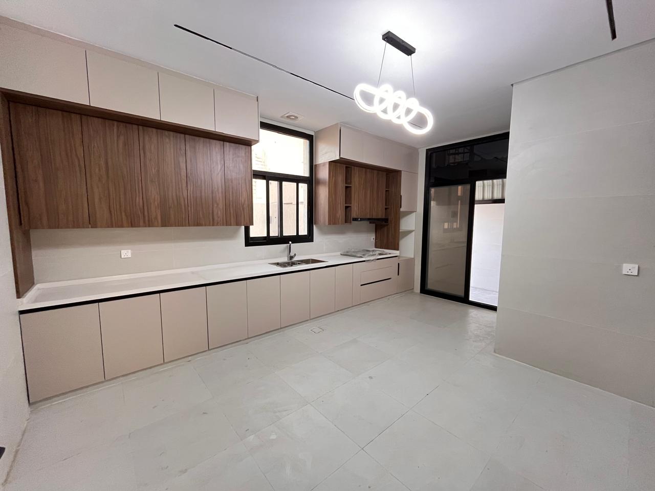 The villa will include five master bedrooms, an up-to-date kitchen with built-in cabinets, a large living and dining area, and a personal courtyard. Additional conveniences, such as covered parking, a rooftop space, and a maid's room, have been added to the property.
