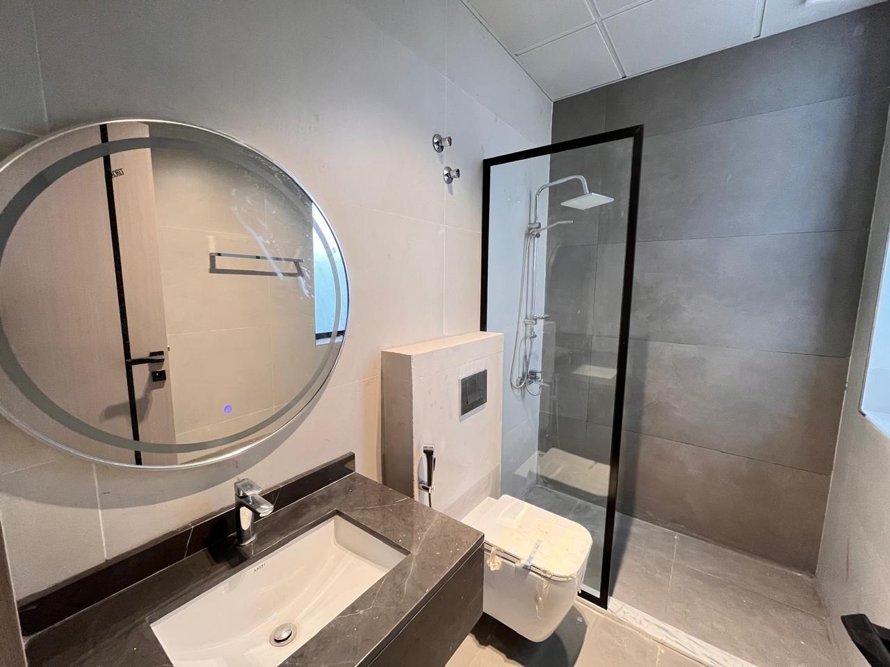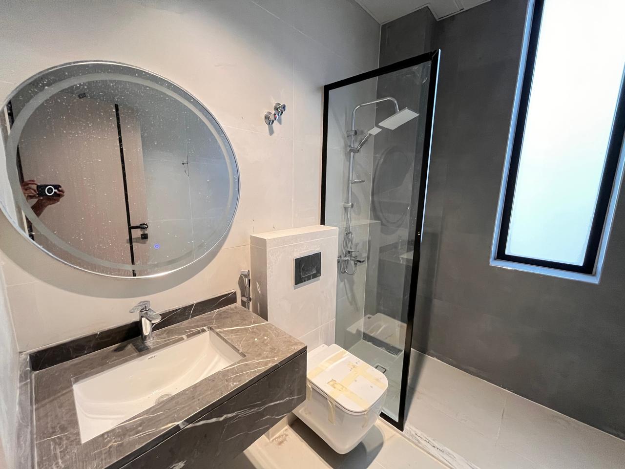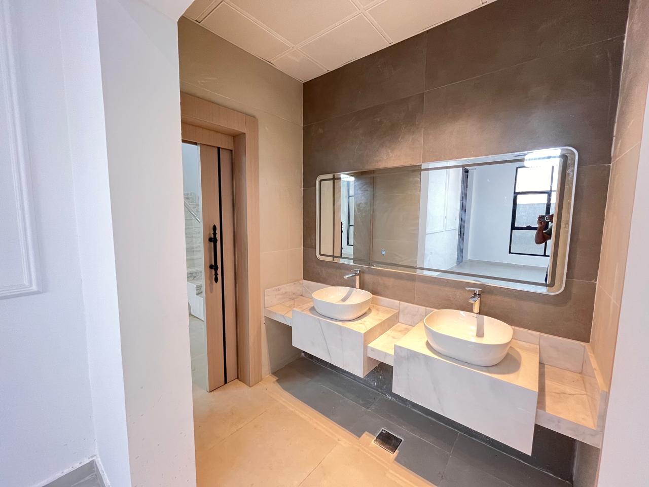 The villa will include five master bedrooms, an up-to-date kitchen with built-in cabinets, a large living and dining area, and a personal courtyard. Additional conveniences, such as covered parking, a rooftop space, and a maid's room, have been added to the property.