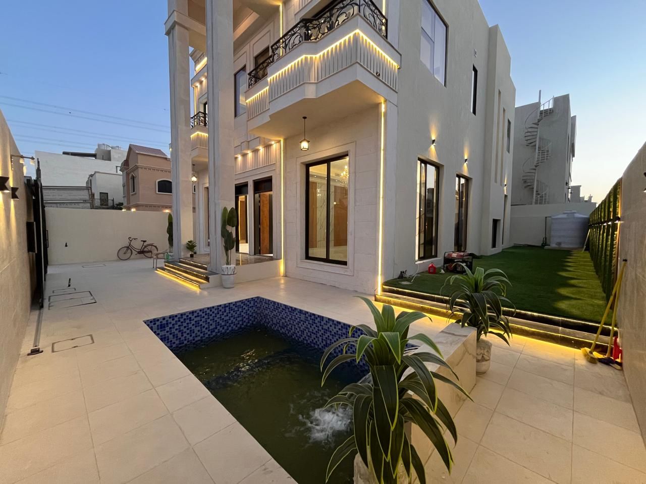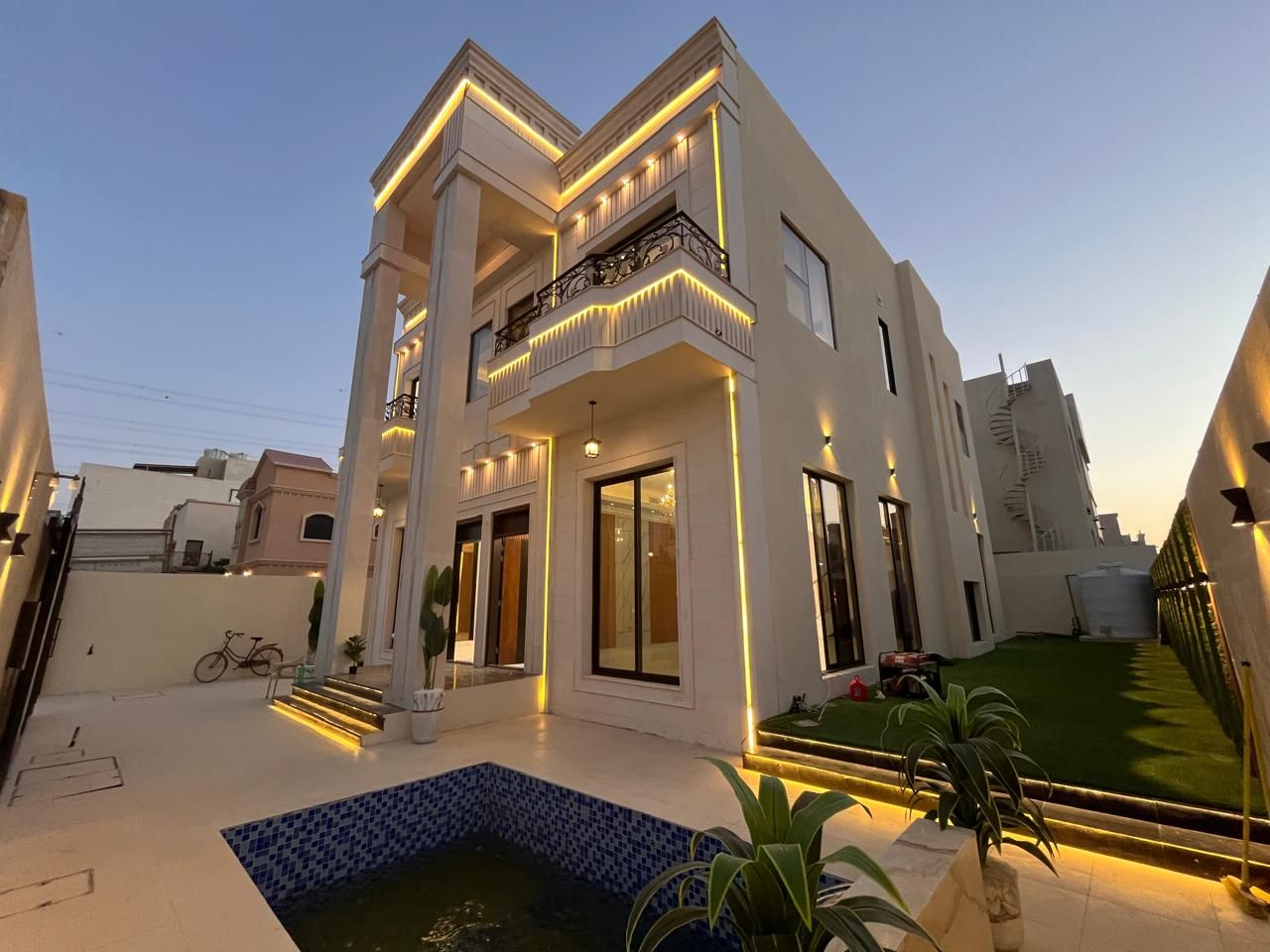 | Al Yasmeen This lavishly constructed 5-bedroom villa in Al Yasmeen Area, Ajman, is an incredible amalgamation of luxurious comfort and practicality. With high-standard materials, modern architecture, spacious interiors, elegant finishes, and a thoughtful layout, the villa provides many living spaces to its family owners, ensuring that they live comfortably and sophistication fills their lives.