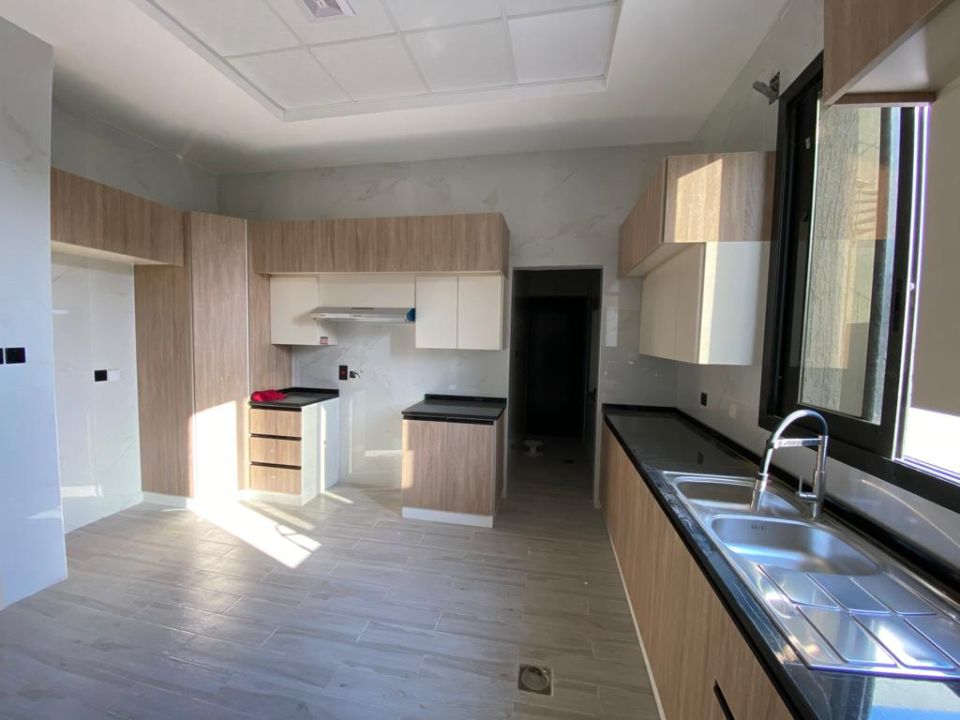 The villa’s first floor offers four master bedrooms with bathrooms and built-in wardrobes. Additionally, there is a distinctive loft preparatory kitchen and a balcony with a beautiful view. The villa does not have an open kitchen, which offers more privacy and allows the occupants to keep the kitchen area separate from the living spaces.