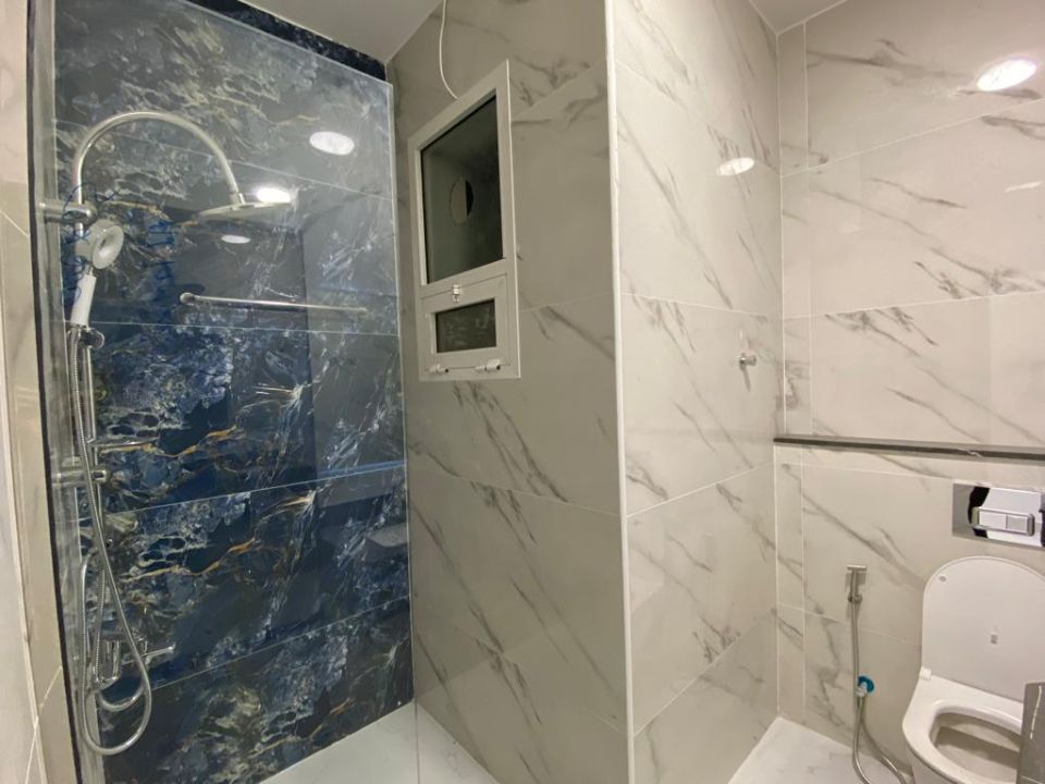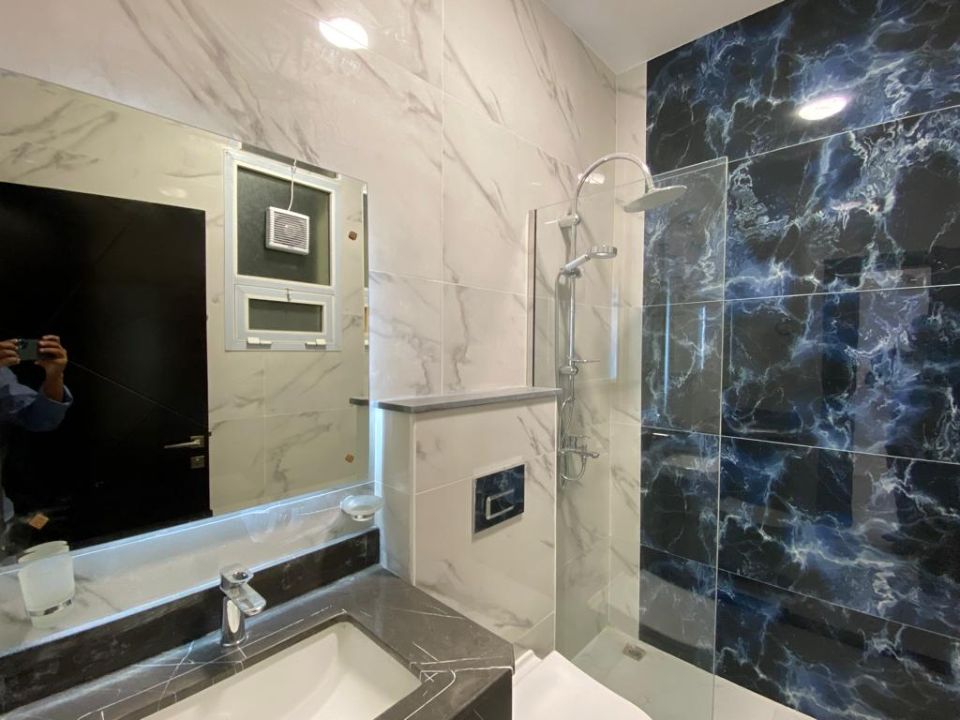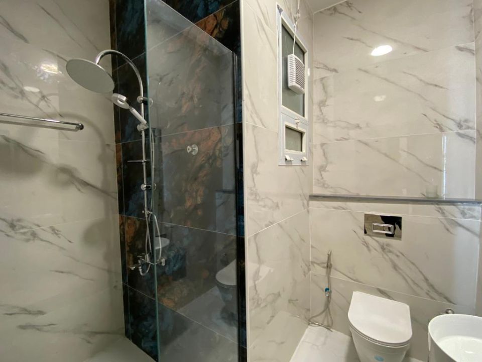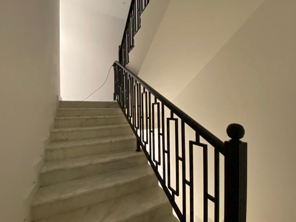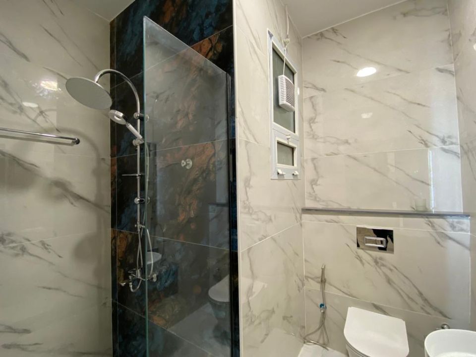 The first floor of the townhouse features four bedrooms, each fully equipped with all the necessary amenities. Each bedroom has a private bathroom featuring high-quality fixtures and fittings, including sinks and showers.