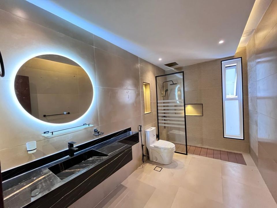 Luxuriate in the comfort of well-designed bathrooms that exude sophistication and style. Whether starting your day or unwinding after a long day, these bathrooms offer the perfect relaxing ambiance. The villa's huge dining area and comfortable TV lounge serve your diverse requirements, allowing you to build priceless moments with your loved ones over meals or movie nights.