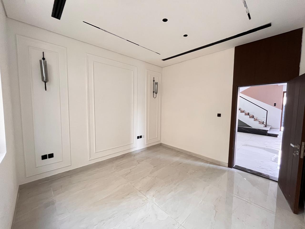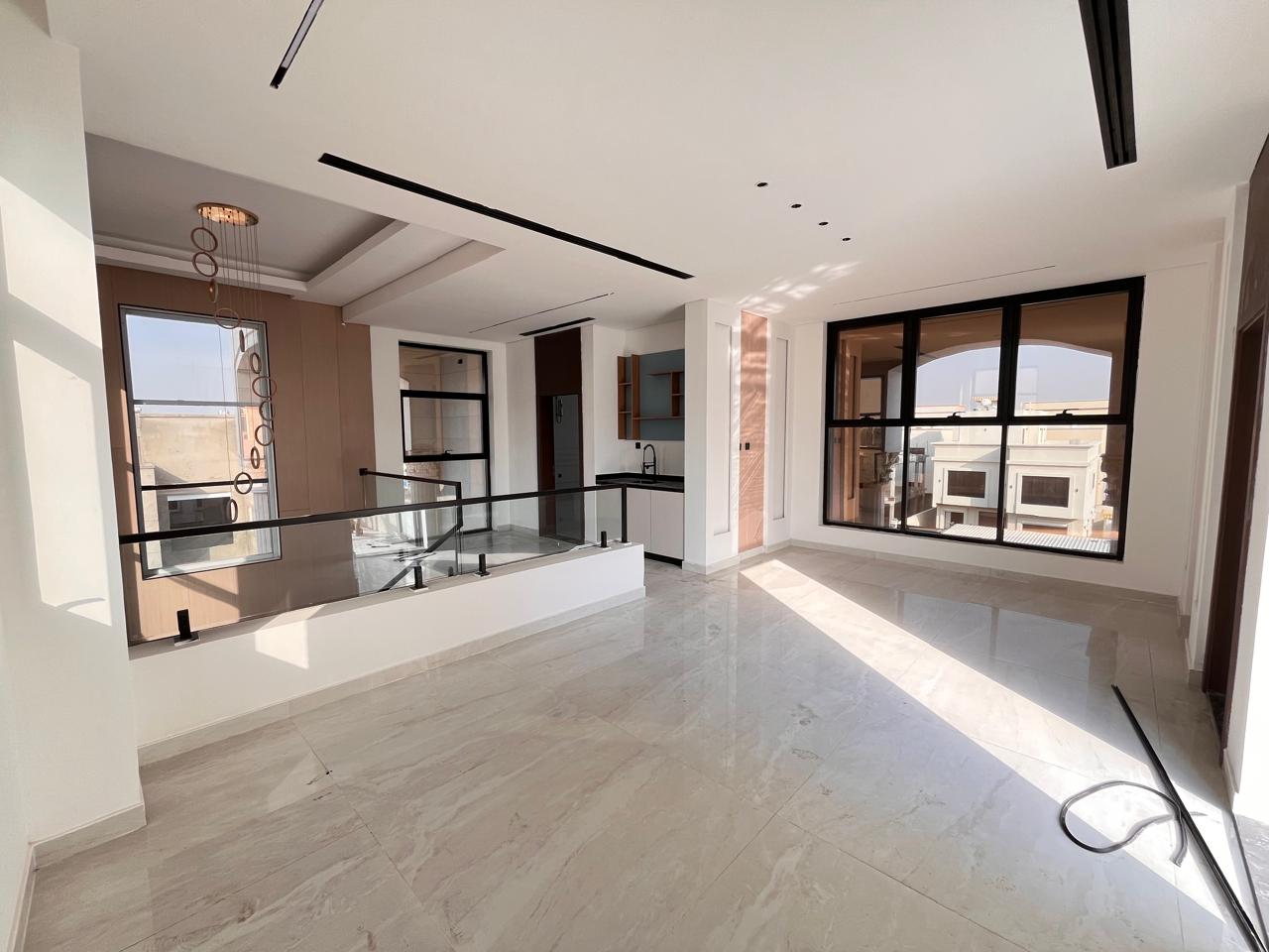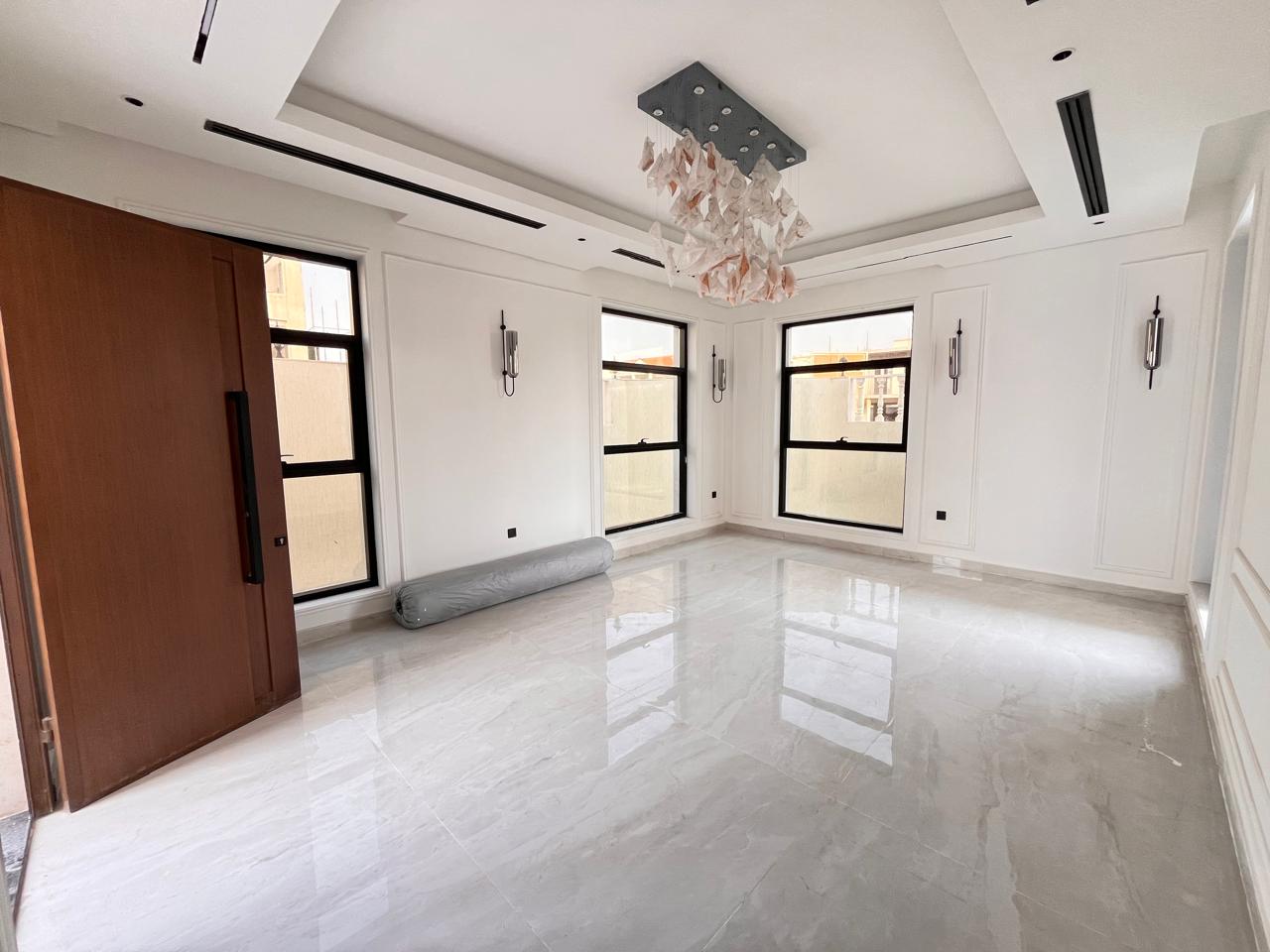This villa features six generously sized bedrooms, including a master suite with an en-suite bathroom and a walk-in wardrobe. Family bathrooms serve additional bedrooms, and a guest powder room is available for visitors. Spacious living and dining areas are designed to maximize natural light and comfort. The modern kitchen is equipped with premium fittings, while a utility room, multiple balconies, a landscaped garden, and covered parking complete the property. High-quality finishes and air-conditioning throughout enhance the villa’s appeal.