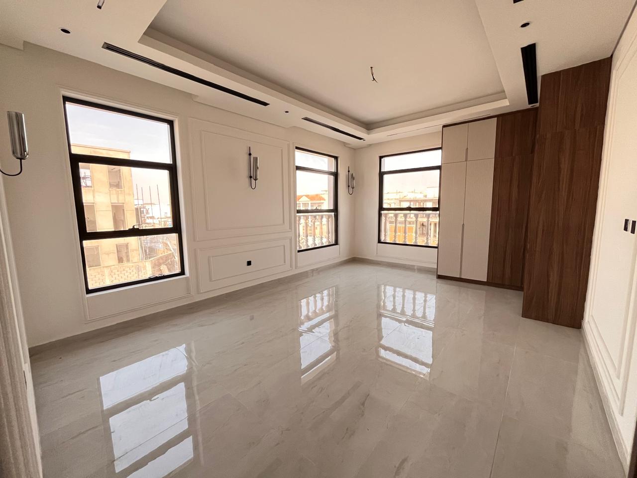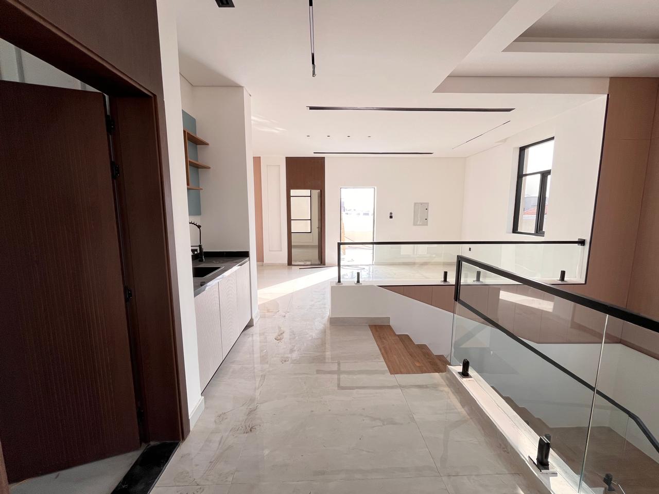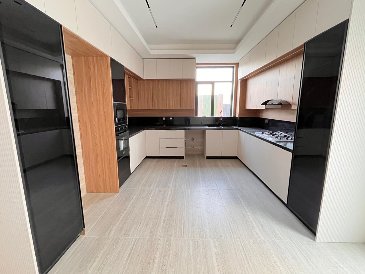 This villa features six generously sized bedrooms, including a master suite with an en-suite bathroom and a walk-in wardrobe. Family bathrooms serve additional bedrooms, and a guest powder room is available for visitors. Spacious living and dining areas are designed to maximize natural light and comfort. The modern kitchen is equipped with premium fittings, while a utility room, multiple balconies, a landscaped garden, and covered parking complete the property. High-quality finishes and air-conditioning throughout enhance the villa’s appeal.