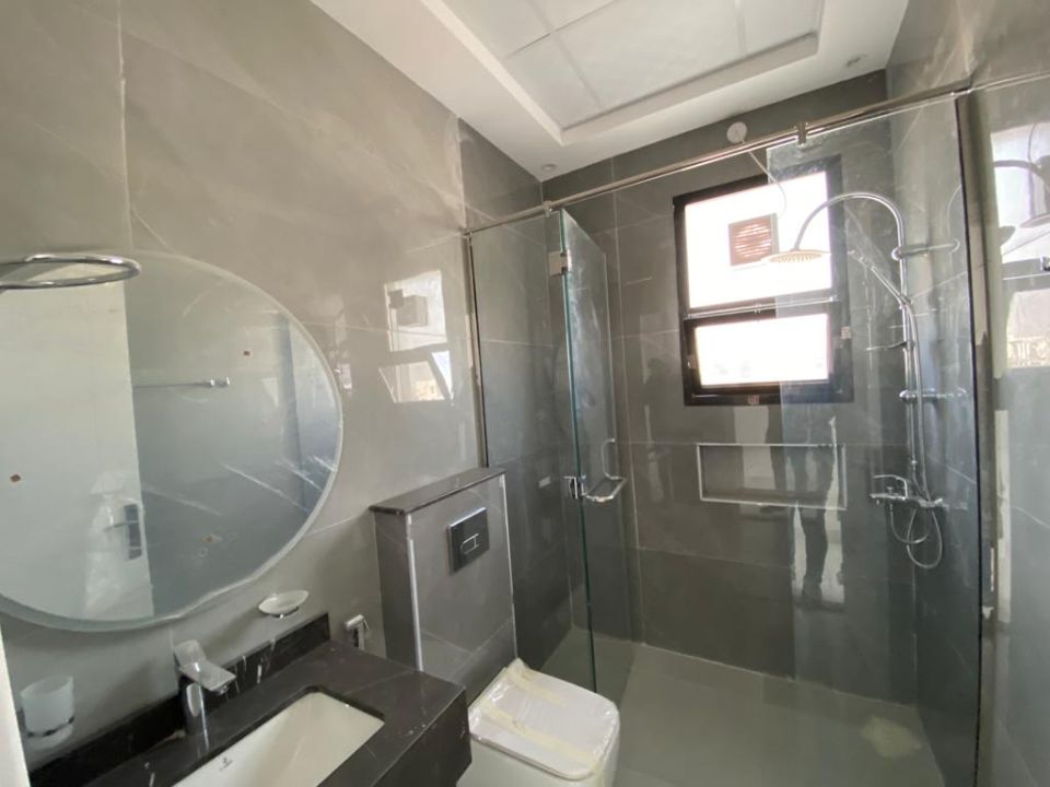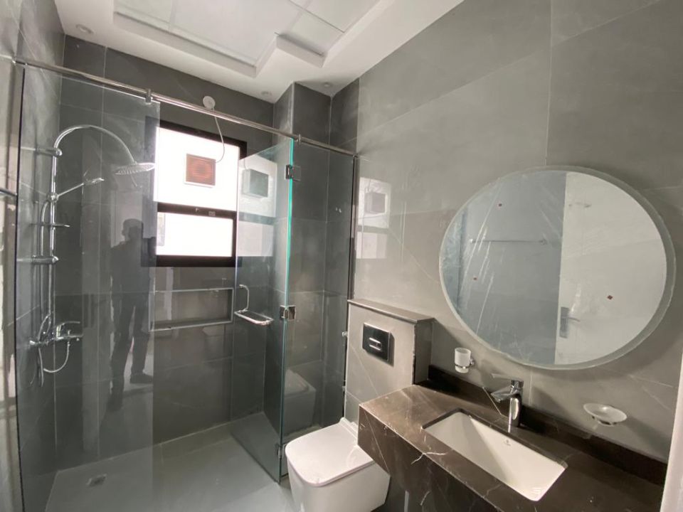 The modern kitchen is a culinary wonder, with top-of-the-line appliances and beautiful finishes. It offers a delightful space for creating delectable meals and entertaining guests. Adjacent to the kitchen, a balcony invites you to step outside and enjoy the pleasant surroundings.