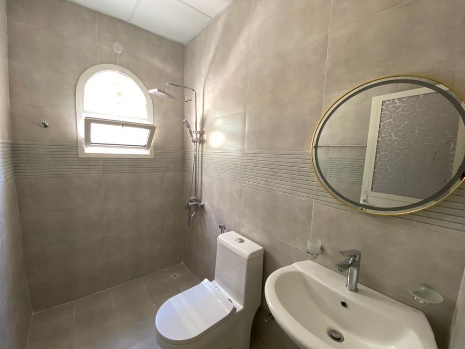 The villa features three spacious bedrooms with built-in wardrobes, ensuring ample storage space for all occupants. Three of these bedrooms are located on the first floor, along with a dry pantry. There are also five bathrooms in total, including the one in the master bedroom, ensuring convenience for all occupants.
