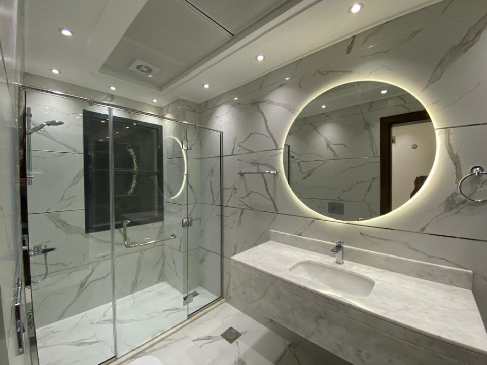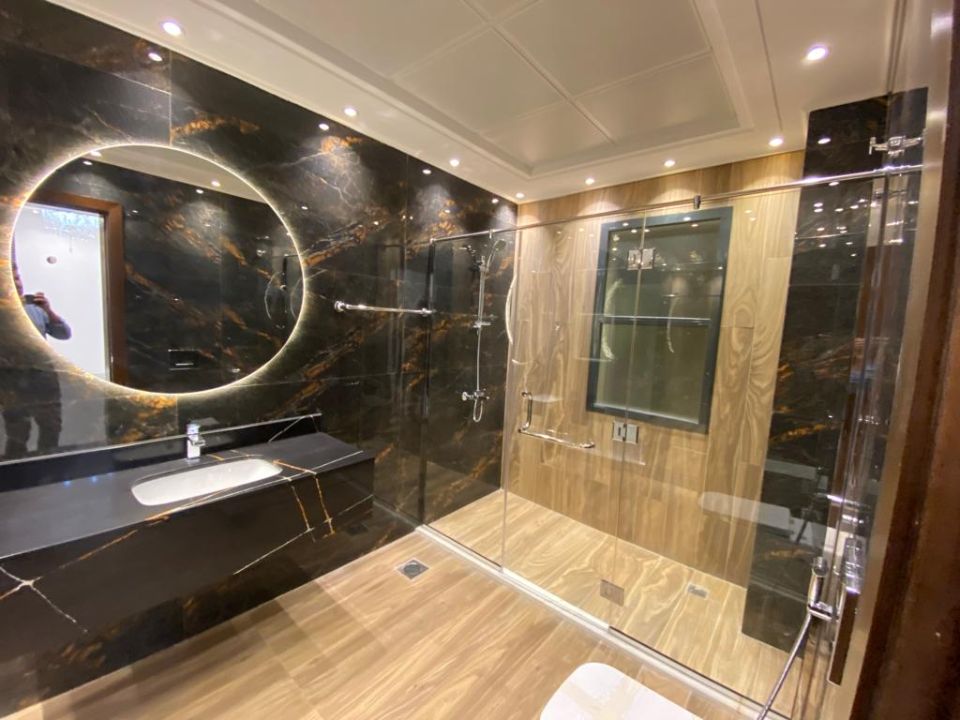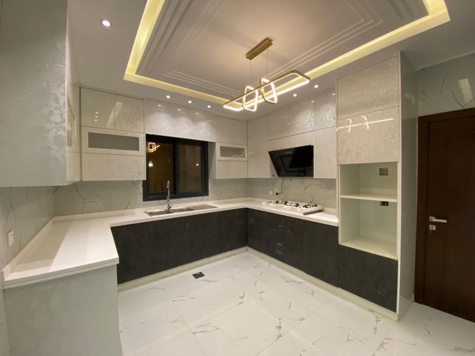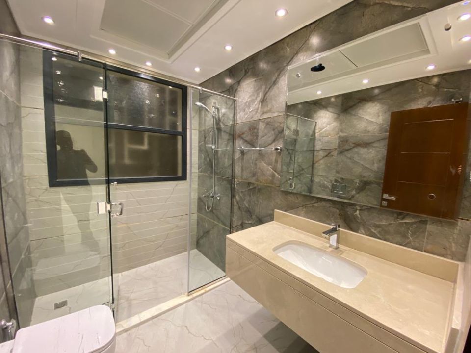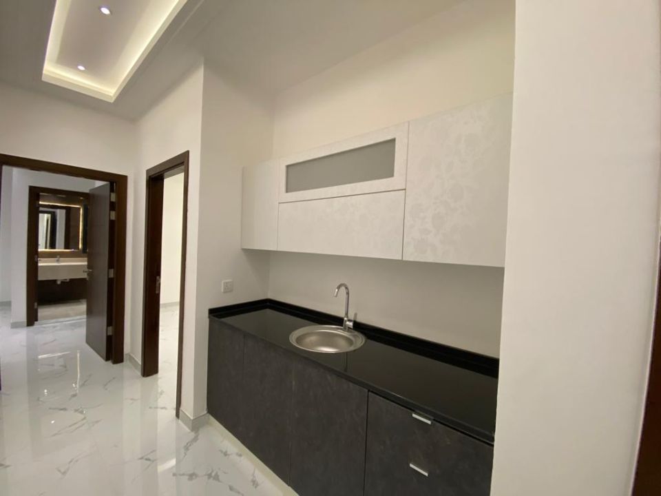 The villa’s first floor offers four master bedrooms with attached bathrooms and built-in wardrobes. Additionally, there is a distinctive loft preparatory kitchen and a balcony with a beautiful view. The villa does not have an open kitchen, which offers more privacy and allows the occupants to keep the kitchen area separate from the living spaces.