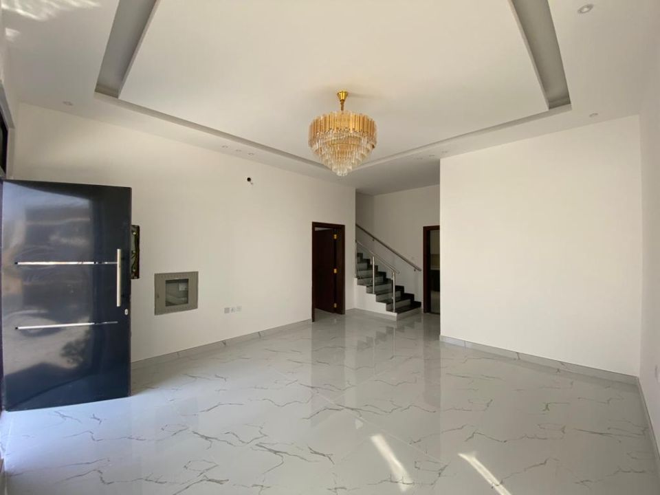 The luxurious villa for sale in Al Zahya Ajman is a prime property. The villa has three bedrooms and five bathrooms with a total area of 3000 sq. ft. It is designed with a sophisticated European style and has a super deluxe finish. The villa has a stone facade, and it is freehold for all nationalities. The villa is 25 minutes from Dubai and 15 minutes from Sharjah, making it a perfect location for commuting between the two cities. This ideal villa for sale will provide a detailed overview of the villa's amenities, characteristics, and location. The villa has various amenities, making it a perfect place to live. These amenities are: