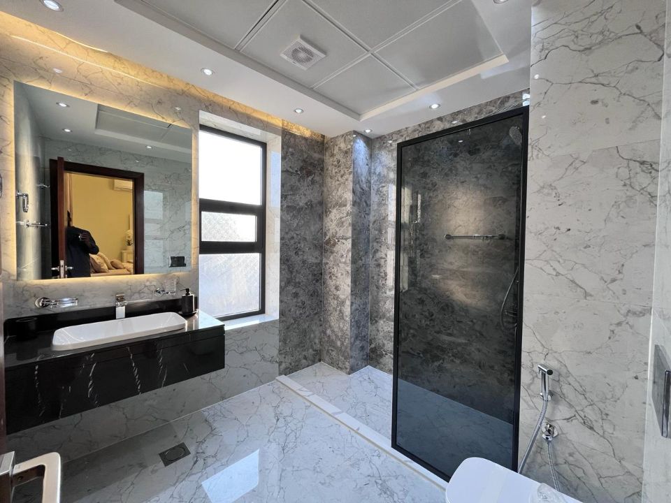 The villa also boasts a maid's room, ensuring your household runs smoothly. The property places a premium on convenience and practicality. Need more storage? No problem! The storeroom is a practical addition, keeping your belongings neat. A dry pantry complements the kitchen, offering additional space to efficiently store your supplies and groceries. The bathrooms are a masterpiece of design and functionality, featuring modern fixtures and high-end finishes. Pamper yourself in the lap of luxury.