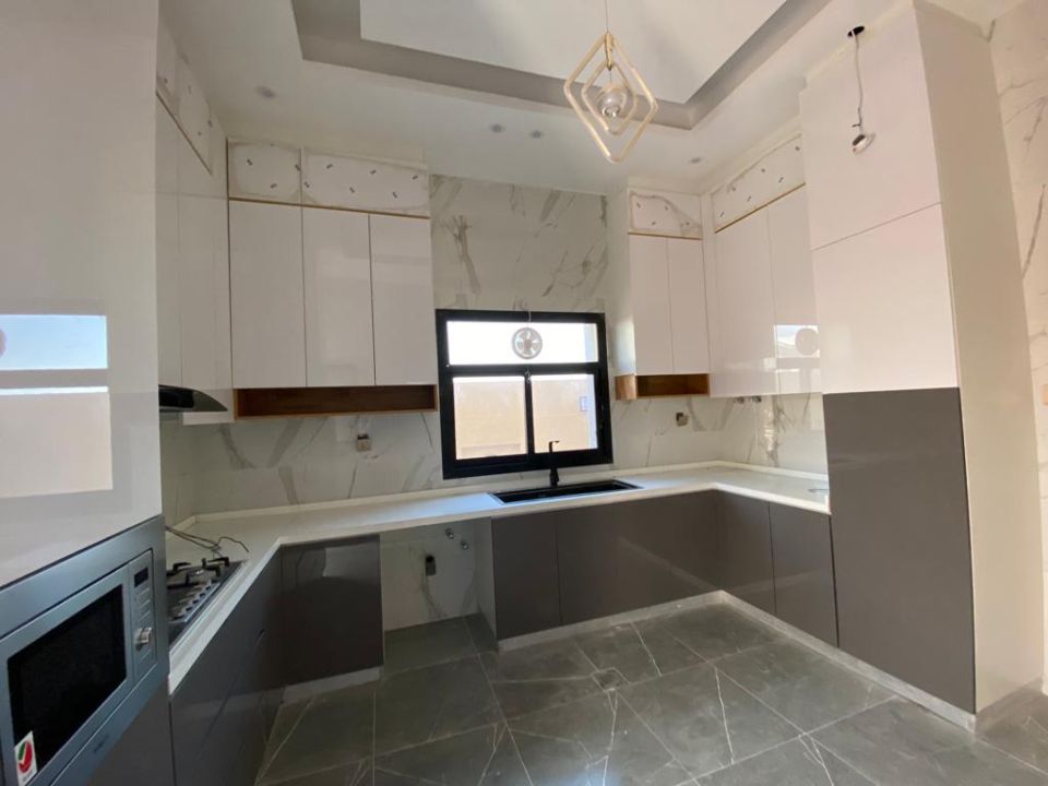 The villa boasts a recently equipped modern kitchen perfect for preparing meals and entertaining guests. The kitchen is equipped with all the latest appliances and is designed with the highest level of luxury and elegance. The villa also has a service room, perfect for storing all your household supplies and equipment. The outdoor villa is beautifully landscaped and perfect for relaxing and unwinding after a long day. The villa also has external parking space and a balcony, which offer stunning views of the surrounding area.