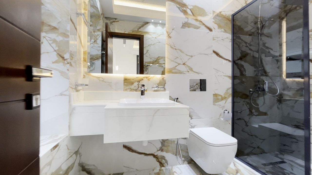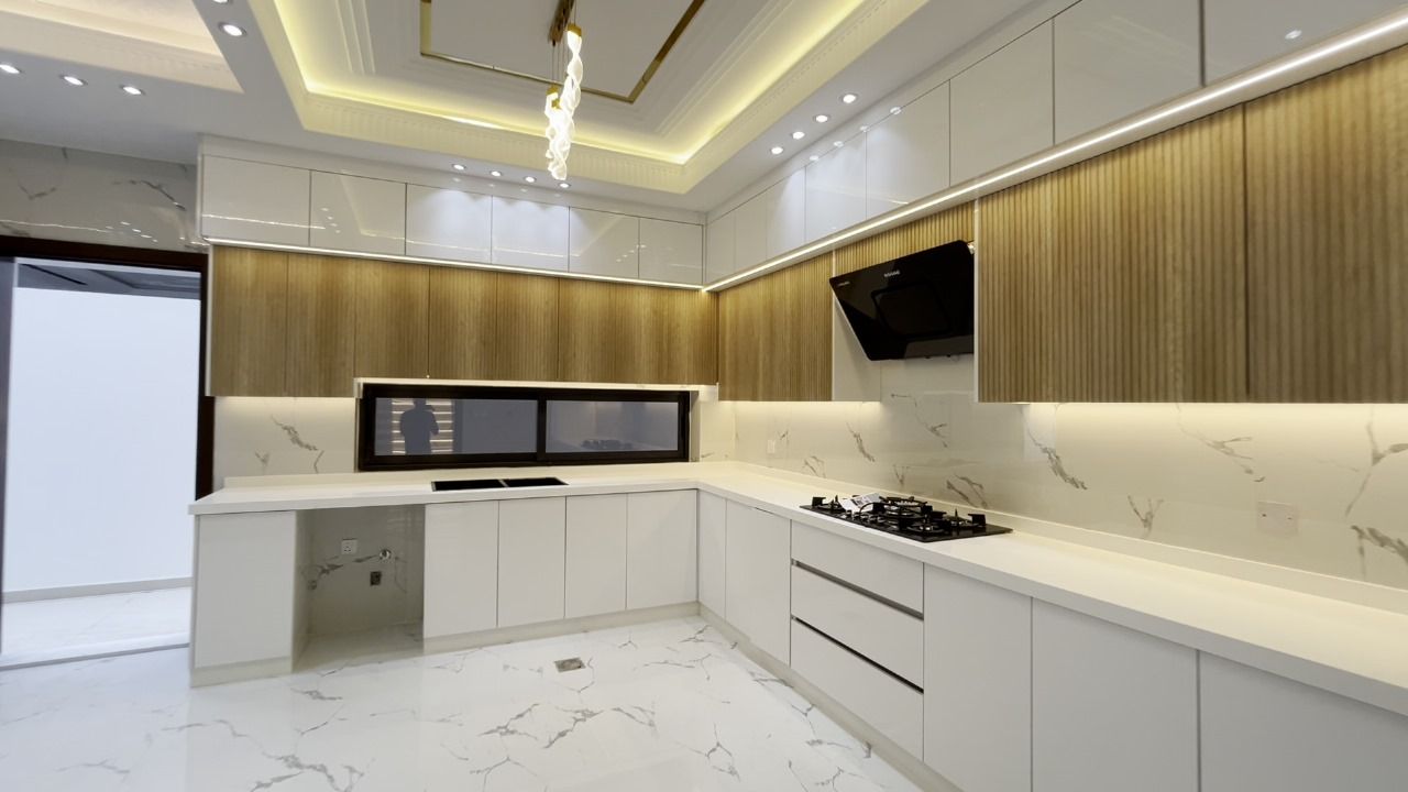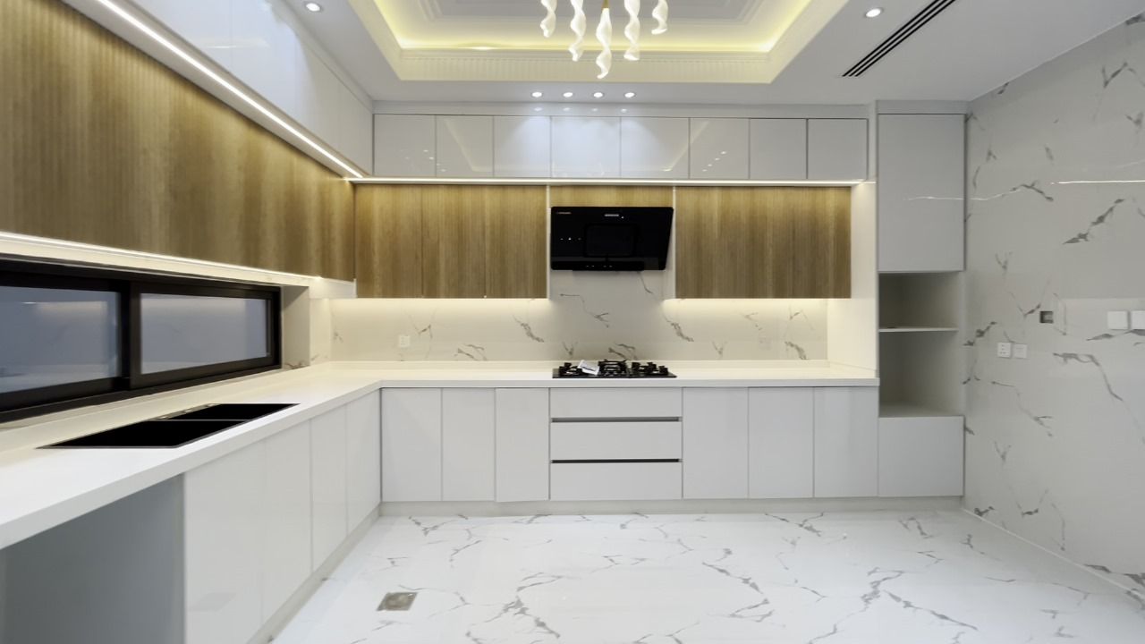 The elegant kitchen in the house, which is furnished with luxurious electronics that blend functionality and elegance, will be appreciated by food enthusiasts. The spacious kitchen work area and ample storage possibilities make cooking a delightful experience. This space functions successfully through its complex planning format while offering a pleasing visual appeal for communication between family members and visitors.