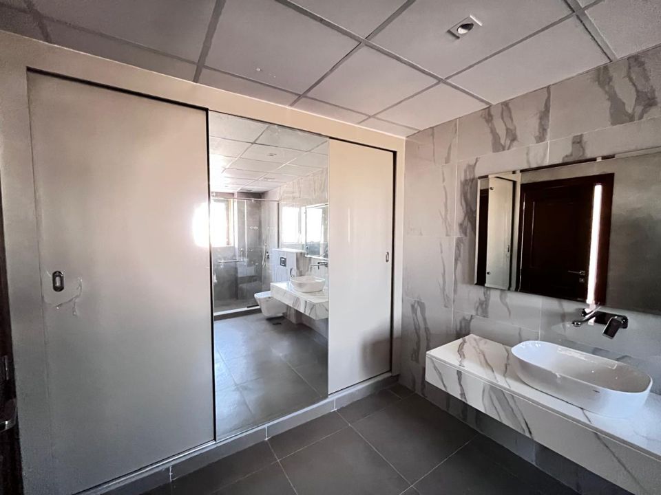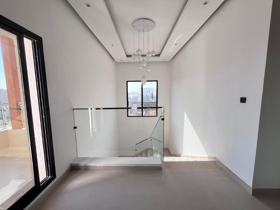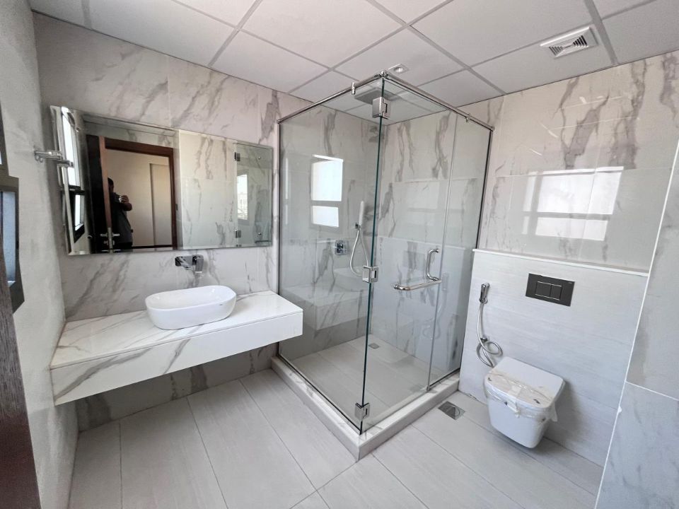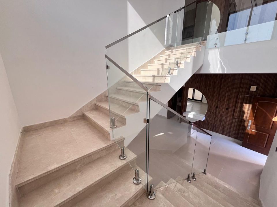 Step outside to find ample parking space, ensuring convenience for residents and guests alike. Inside, the villa boasts premium amenities such as gypsum ceilings, central AC, elegant chandeliers, custom wardrobes, and a well-appointed pantry. Spread across two stories, this villa offers versatile living spaces and breathtaking views from the balcony
