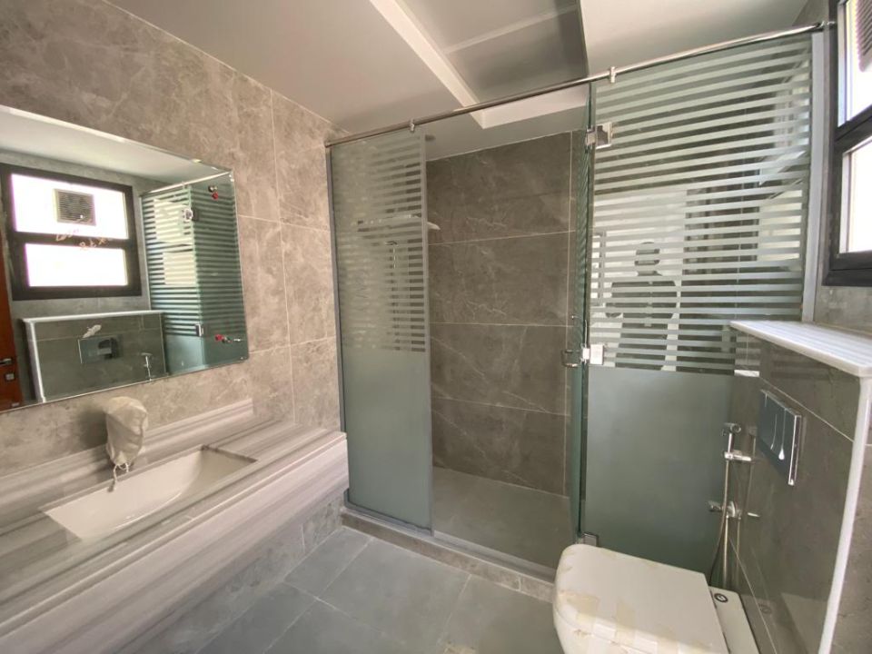 As you go up to the first floor, you'll find four spacious bedrooms, each with its en-suite bathroom and a study room. The primary bedroom is imposing, featuring a large walk-in closet and a balcony that offers stunning views of the surrounding area.
