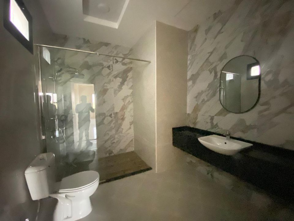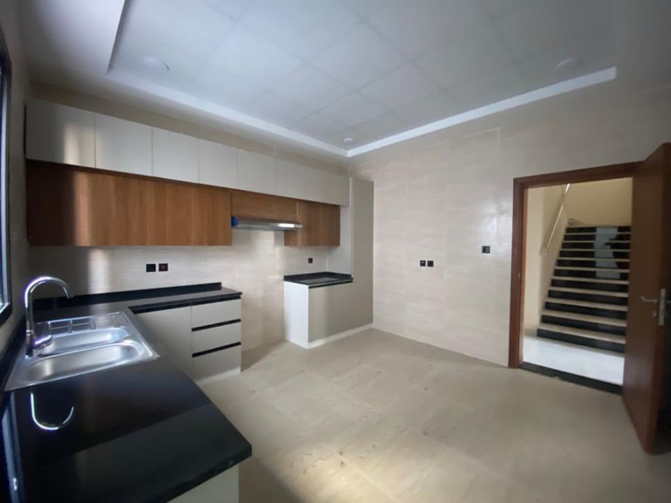 With 6 bedrooms and 8 bathrooms, this villa is perfect for families or individuals who want to live in style and comfort. The ground floor features a bedroom, kitchen, dining room, TV lounge, maid's room, and storage area. The first floor boasts 3 bedrooms with built-in wardrobes and a dry pantry, perfect for storing all your essentials, and two bedrooms with attached bathrooms on the top floor.