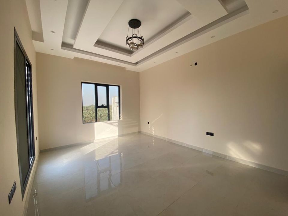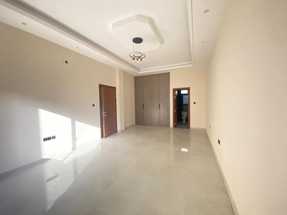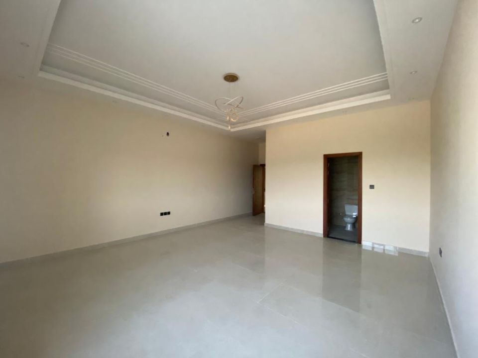 This gorgeous property is just 25 minutes from Dubai and 15 minutes from Sharjah, making it the perfect location for those who want to enjoy the best of both worlds. The villa boasts a spacious area of 4300 Sqft and features 8 bathrooms and six generously sized bedrooms, with one bedroom conveniently located on the ground floor with the following amenities: